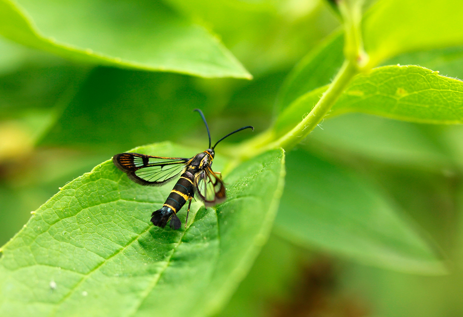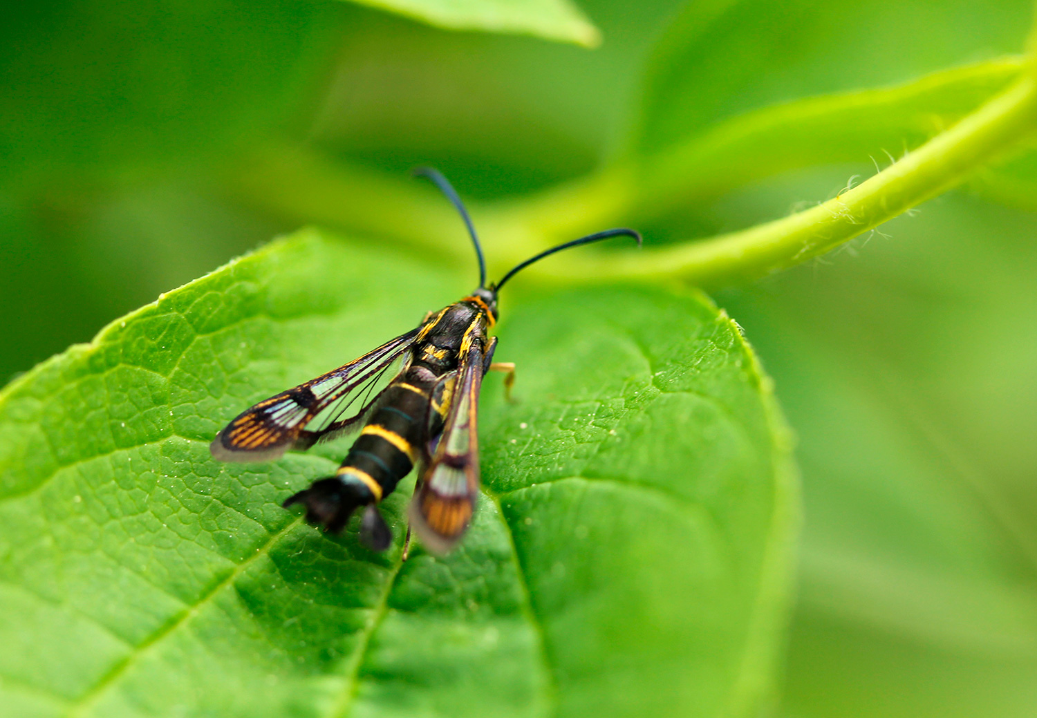 Впервые увидел эту бабочку.  Стеклянница Дубовая, Synanthedon conopiformis,  07.06.2025, Владимирская область, Александровский район.
