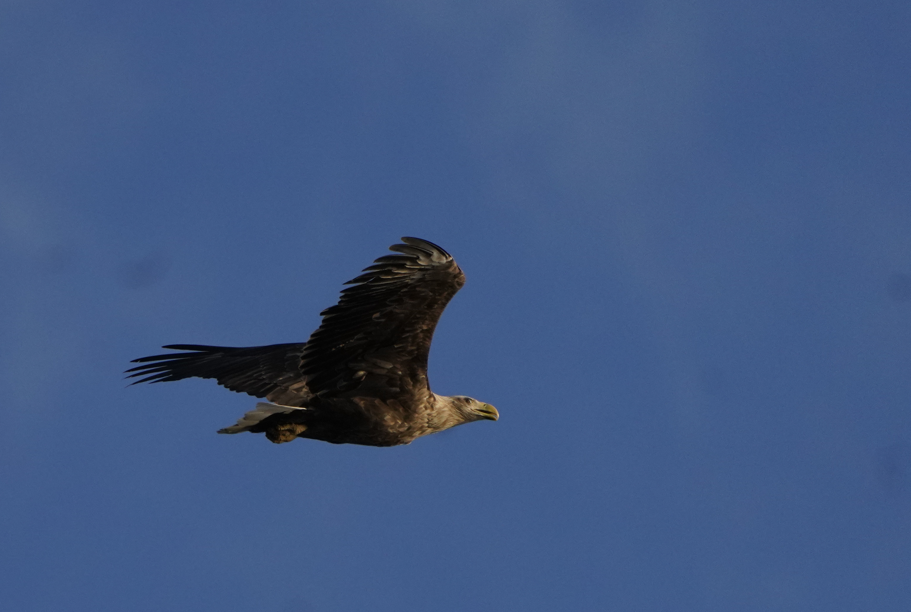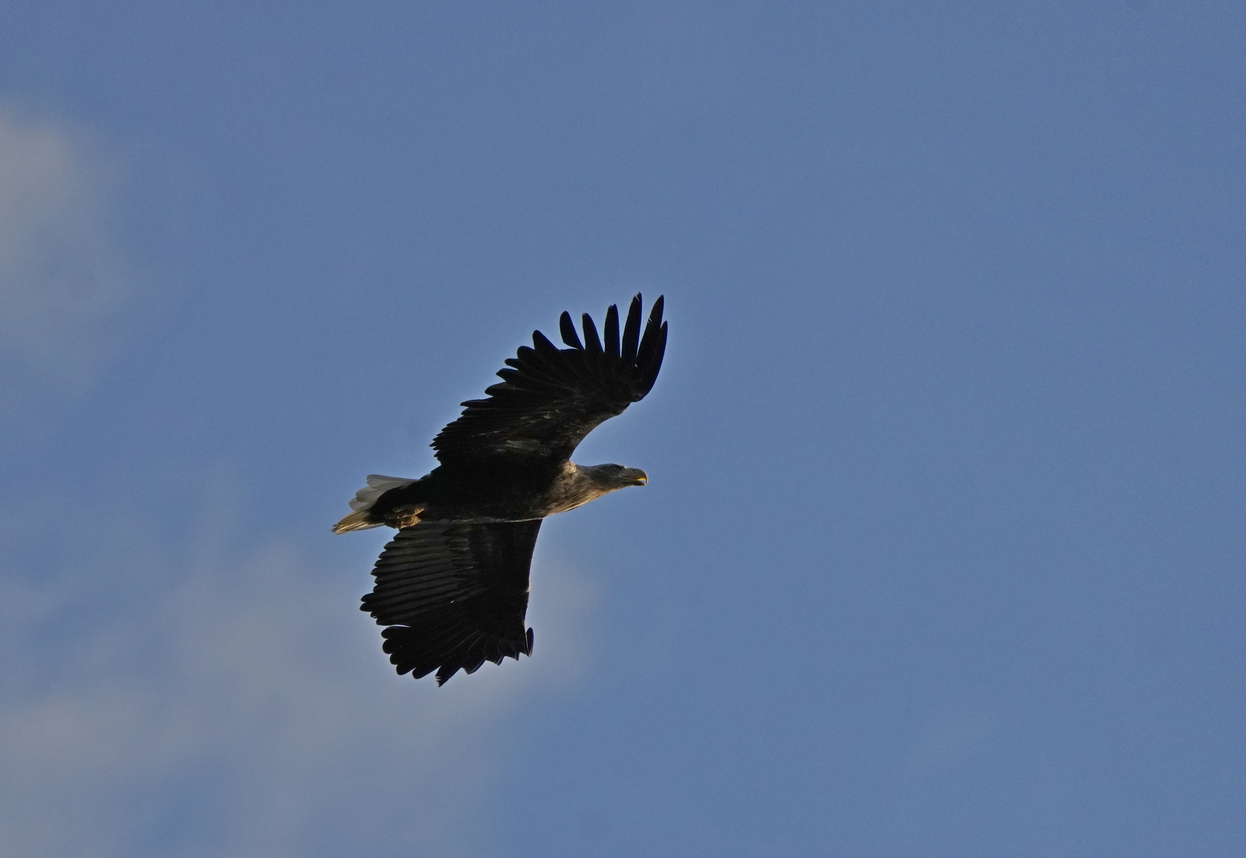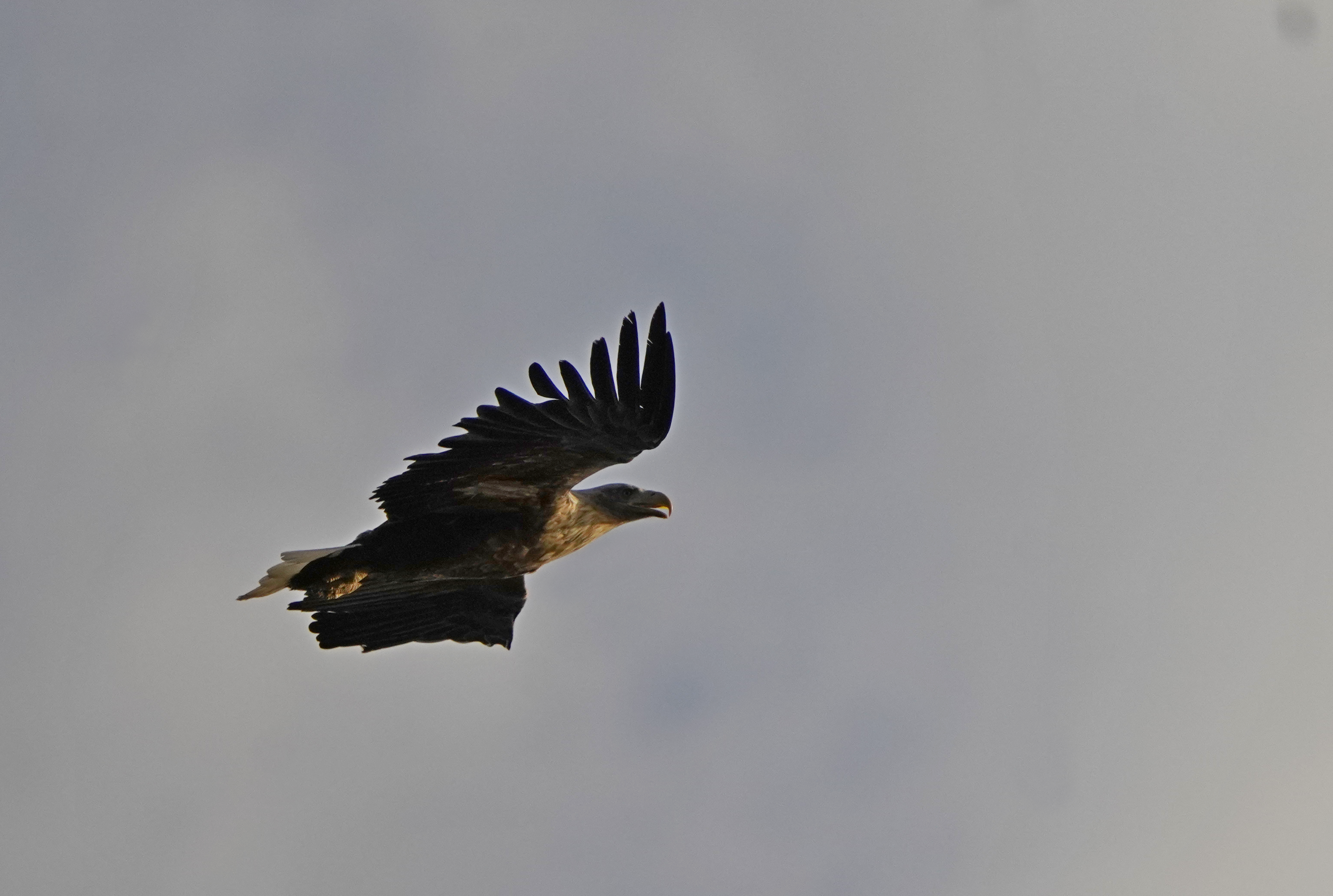 Витя Охотин уже пару лет анонсировал гнездование белохвоста на Плещеевом. Сами мы гнезда не видали, но скопы из ближнего гнездования исчезли. И вот он попался на патрульном облёте у Кухмаря.