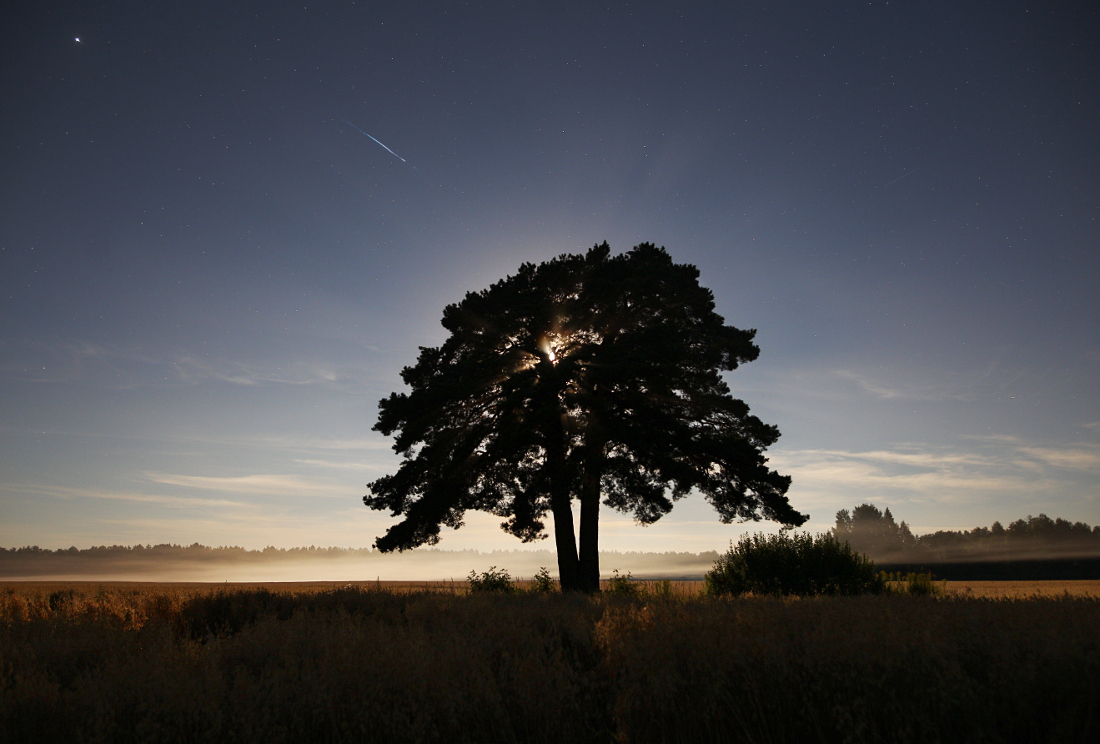 Дымный след от пролета болида. Увы, сам болид в кадр не попал. Пик метеорного потока Персеиды, ночь на 13 августа, Нижегородская область.