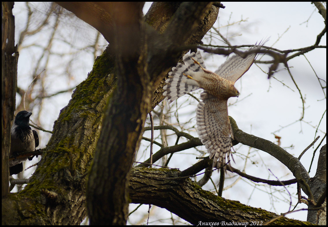 Это кроп, в оригинале справа еще одна ворона, но она далеко, хотелось покрупнее показать ястреба.