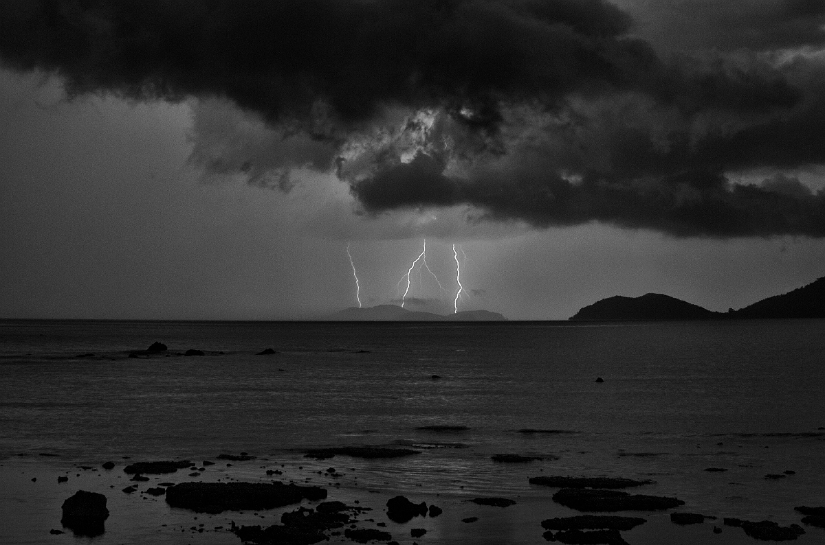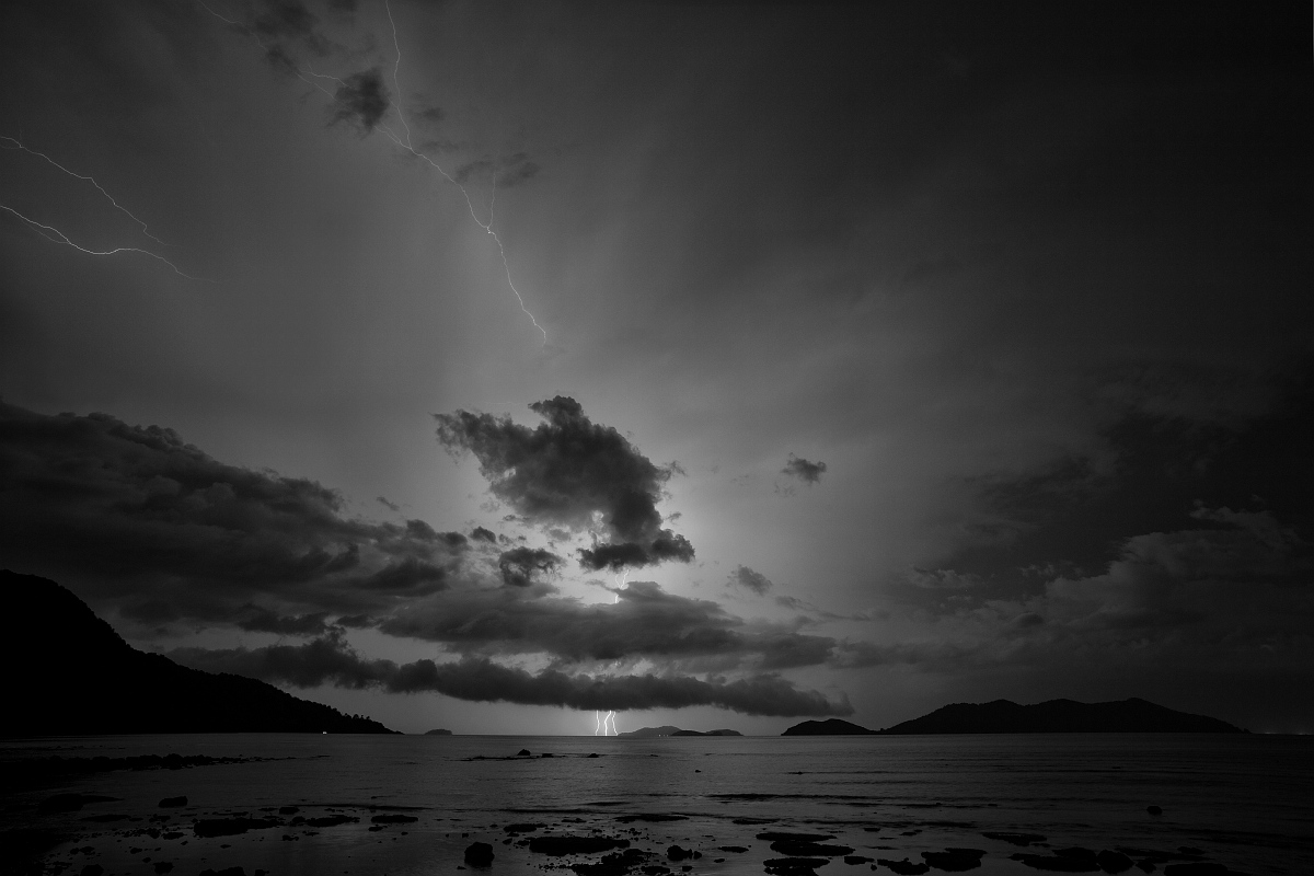 Первый - два снимка сделанные с разницей в полторы минуты, наложенные друг на друга. Второй - кроп участка с молниями.