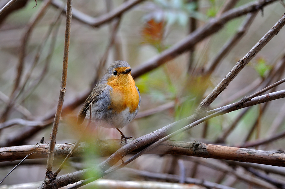 Возвращаясь с карьера (Лосиный остров), устав от ветра, сел отдохнуть на опушке леса. В кустах заметил быстрое шевеление, пригляделся, так и есть зарянка. Пришлось снять на память. Правда света было совсем мало, но что то мал мала получилось.