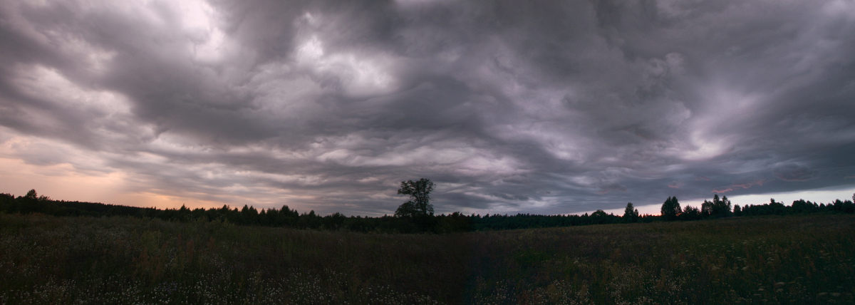 Необычные облака перед грозой, июль 2012. Панорама склеена из двух кадров.