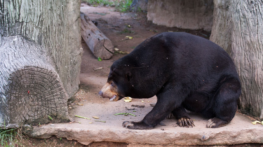 Старый гималайский (белогрудый) медведь из открытого зоопарка Кхао Кхео в Тайланде