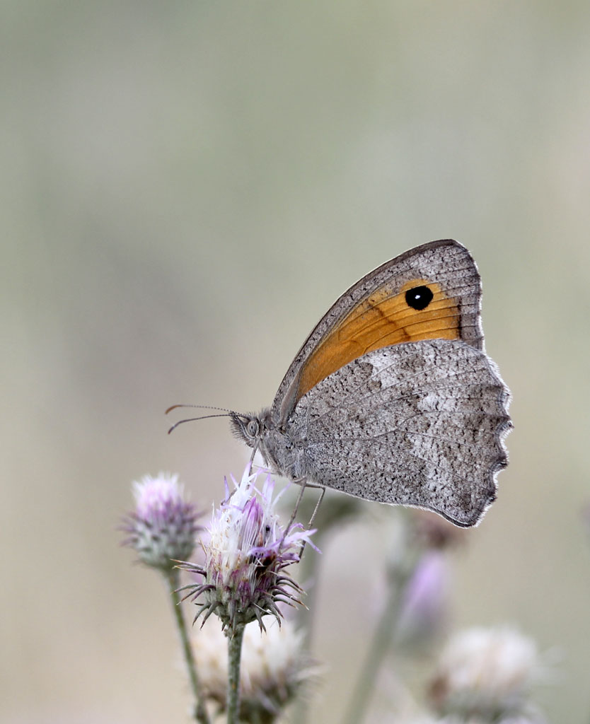 Вот такая невзрачная бабочка. Фото сделано 03.07.2011 года в Природном парке "Щербаковский" в Волгоградской области. Думал что это Воловий глаз. Но на сайте www.inaturalist.org определили как Бархатница Волчья Hyponephele lupinus.