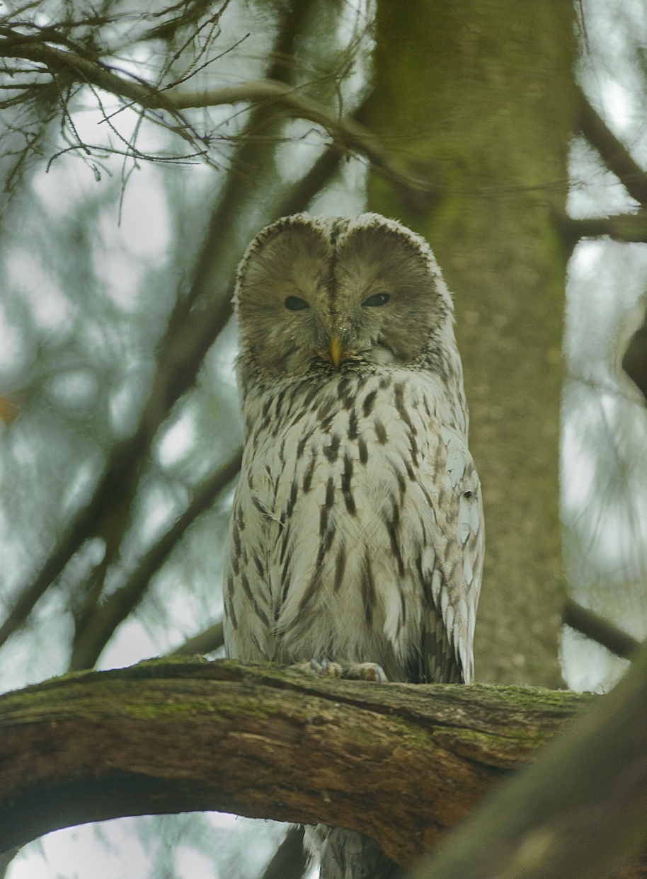 Сегодня в субботу 6 декабря втроем(Сергей Ионов, Юра Соколков и я) прошлись по Ботанике в поисках чего-то живого. День погодой не радовал и с полдесятого до часу видели только синиц, поползней, да дятлов, проскочил переплятник. И вот когда усталость хотела погнать к машинам, набрели на длиннохвотую неясыть, сидела она в елках, в темноте, но спокойно дала себя снять, но к съемке со вспышкой отнеслась негативно, оно и понятно, в глазах блики и говорит плохо я выхожу со вспышкой. и смылась, что и видно на послнднем кадре.