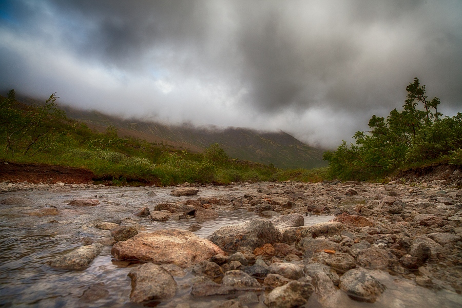 Мурманская область, Кировский район. Речка текущая вдоль хребта Поачвумчорр. С обработкой конечно наверное перемудрил, но без неё всё слишком серое было, вообще очень сложно передать ту картину которую я там встретил.