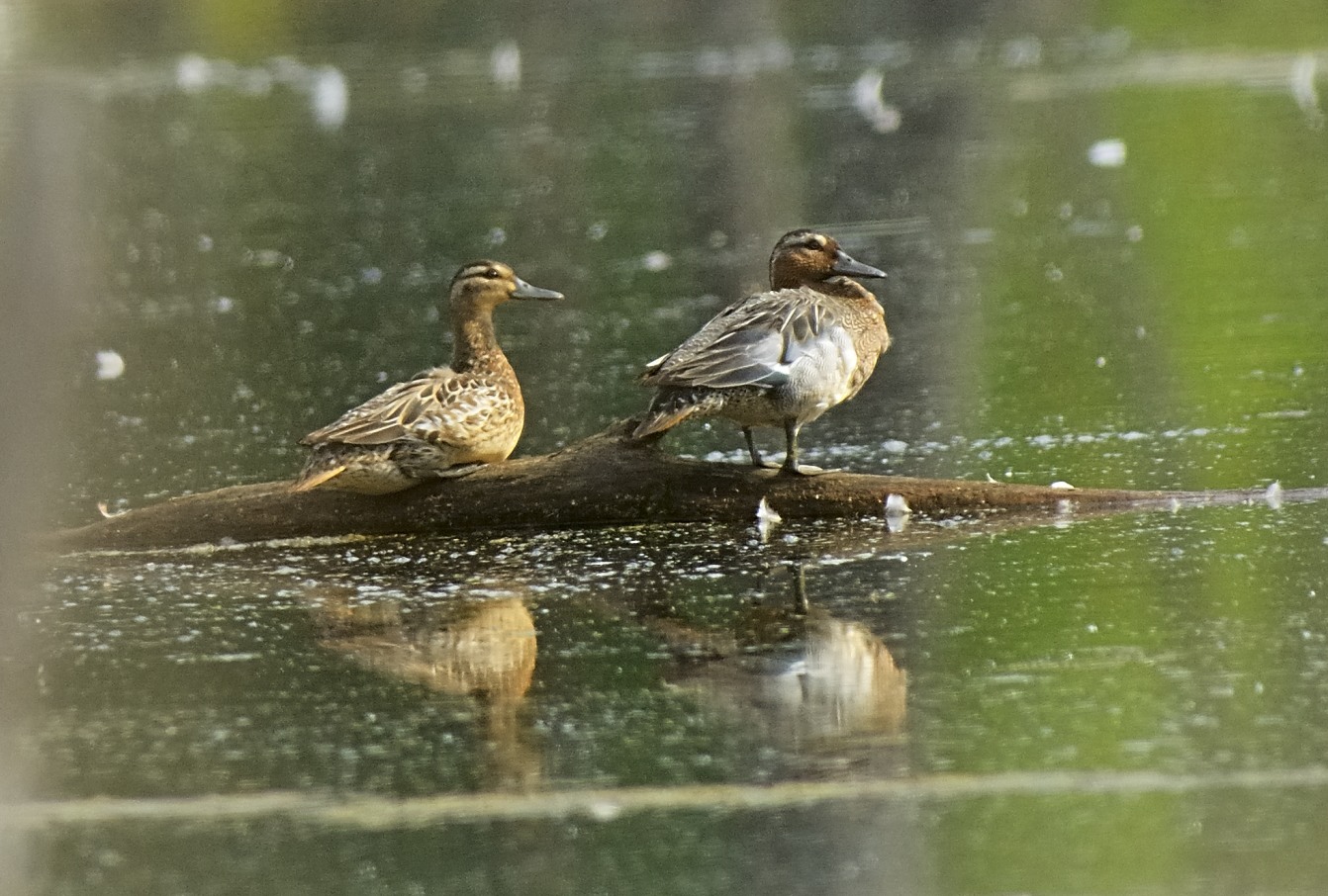 На одном из рукавов Яузы на подходе к цапле наткнулся на пару чирков-трескунков. Самец уже потерял свой весенний лоск.
