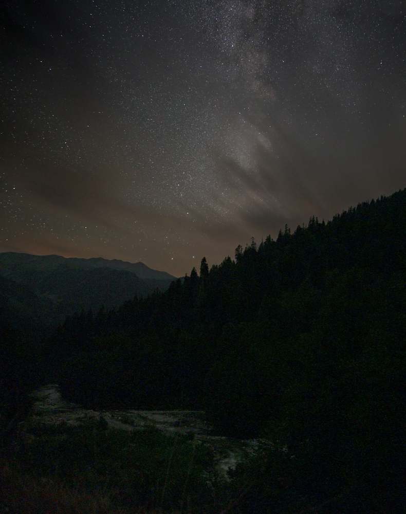 Погода в горах богата на сюрпризы. После жаркого дня наступила прохладная ночь, ветер гнал по небу рваные облака, а где-то вдалеке за горами сверкали грозы. Снято в Абхазии 11 августа 2015 года