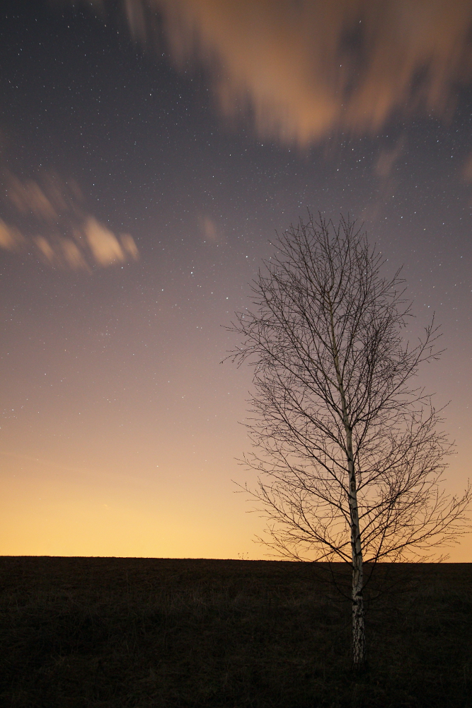 Одинокая береза на краю поля, ночь, почти полная луна светит в спину, прохладный ночной воздух - люблю такие моменты!