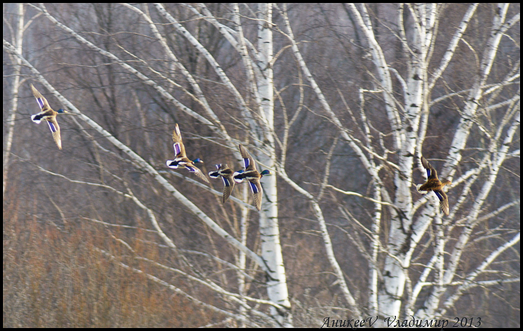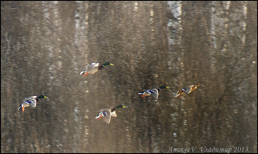 Весна: на одну крякву- четыре селезня, отставшие проиграют.