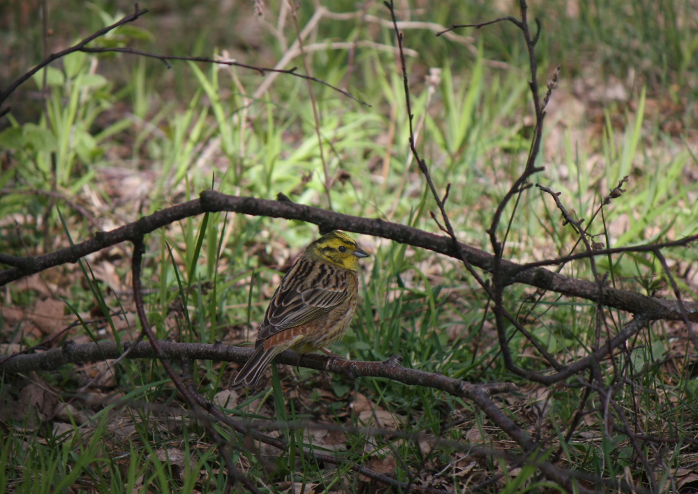 А это как?) Подозреваю, что да - я заметил пару овсянок, копавшихся в подстилке, и начал подкрадываться (впрочем, они меня прекрасно видели). Пока я им не надоел, удалось сделать несколько снимков в духе "ура, я видел овсянку!"