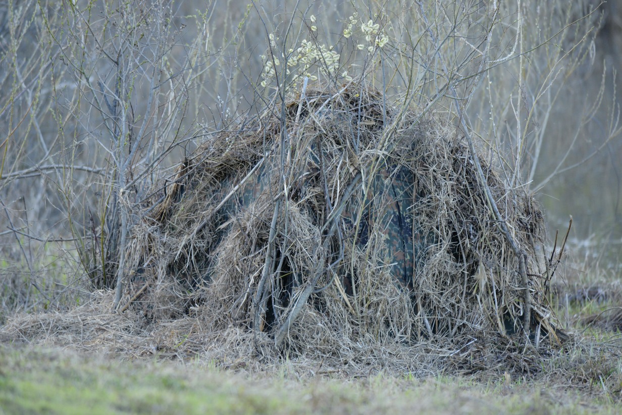 Спасибо тебе, Валера, засидка хороша по всем параметрам. Немного доработал- пришил изнутри направляющие для дуг и вшил с обоих сторон шнур со стороны входа. Еще надо нашить снаружи полосы или шнуры для маскировки - для травы и веток. На скользкую ппалатку Андриана клали даже "Лешего", чтобы трава держалась.