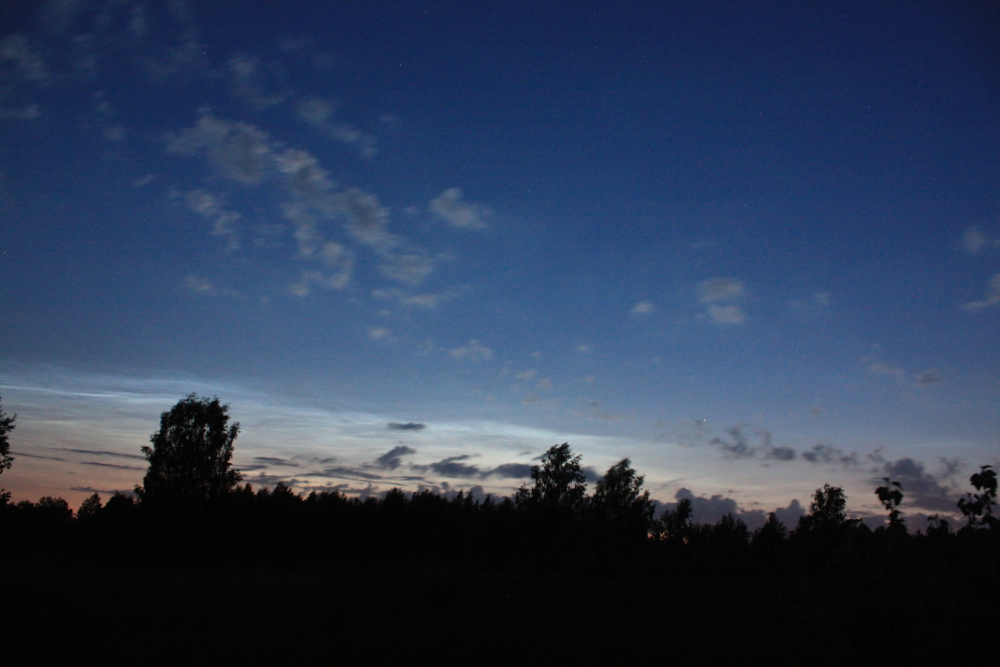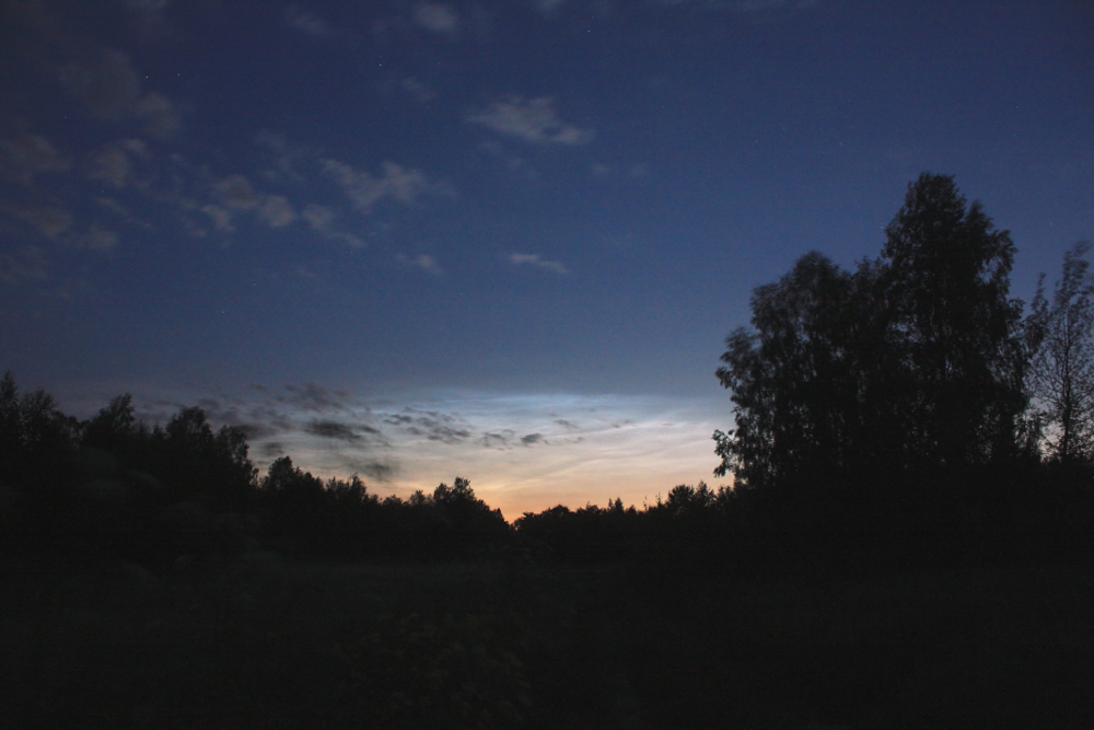 Наступил сезон появления серебристых облаков, но мне пока так и не удалось их увидеть в этом году. От скуки покопался в архивах и нашел кое-какие фото этого явления, сделанные еще 13 июня 2010 года. Фото так себе, но, надеюсь, в этом году удастся разжиться более интересными фотографиями серебристых облаков - сезон в самом разгаре. Так что если вы находитесь в диапазоне широт от 43 до 60 градусов, тоже можете поохотиться за этим красивым и до сих пор слабо изученным явлением. Известно, что серебристые облака возникают на высоте около 80 км - это самые высокие облака на Земле. Благодаря такой высоте, находящееся за горизонтом солнце подсвечивает эти облака, делая их яркими на фоне сумеречного неба. До сих пор точно не известно, каков механизм формирования этих облаков - как водяной пар попадает в мезосферу, и какие частицы служат центрами его кристаллизации.