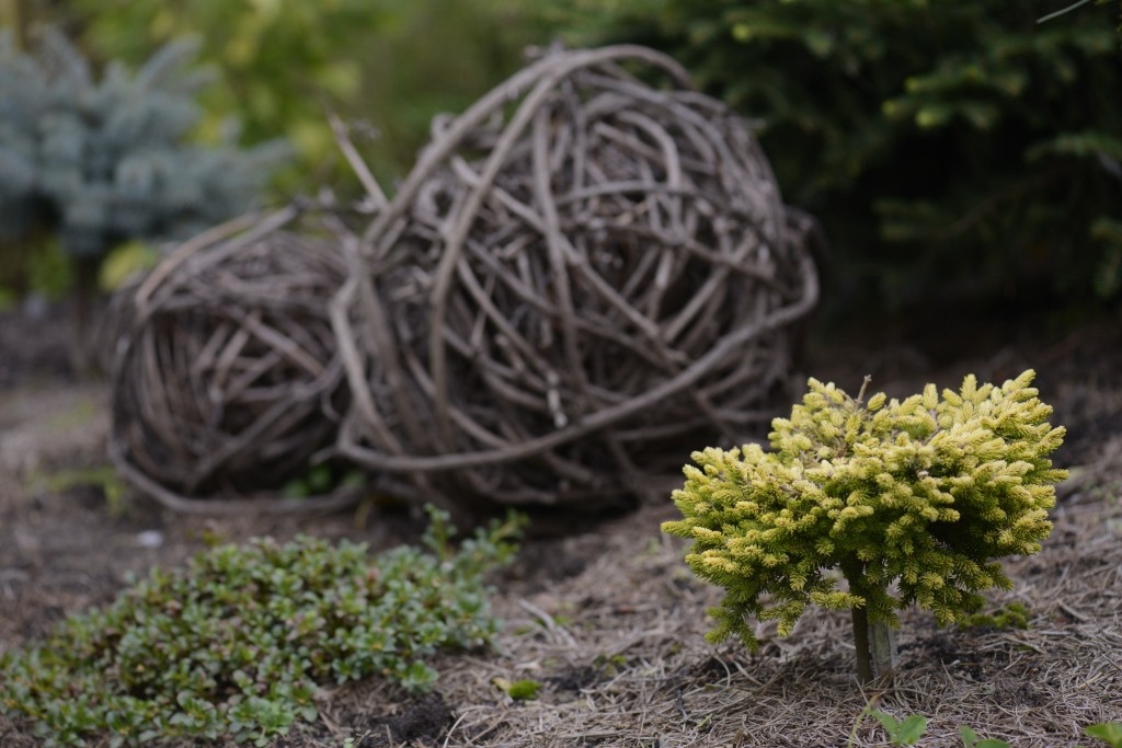 А это она такие декоративные шары сплела, то ли из лозы то ли из чего-то похожего.