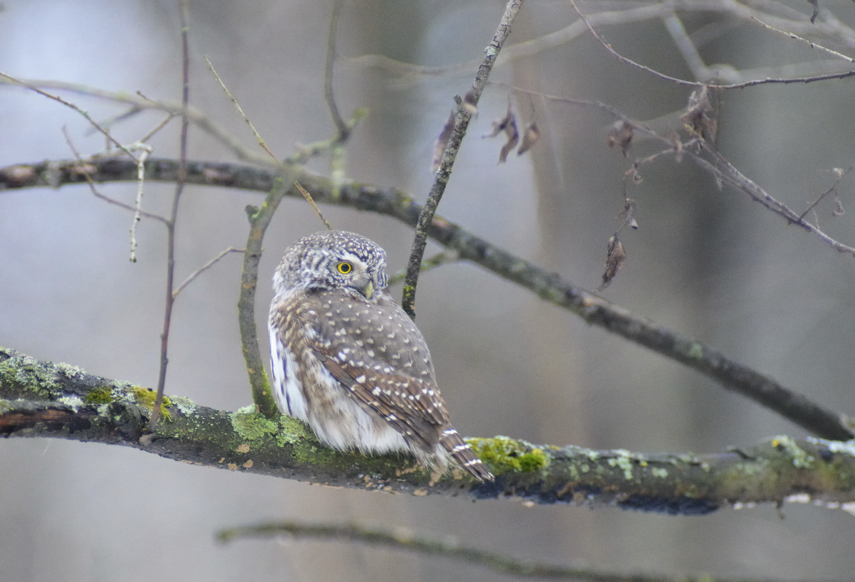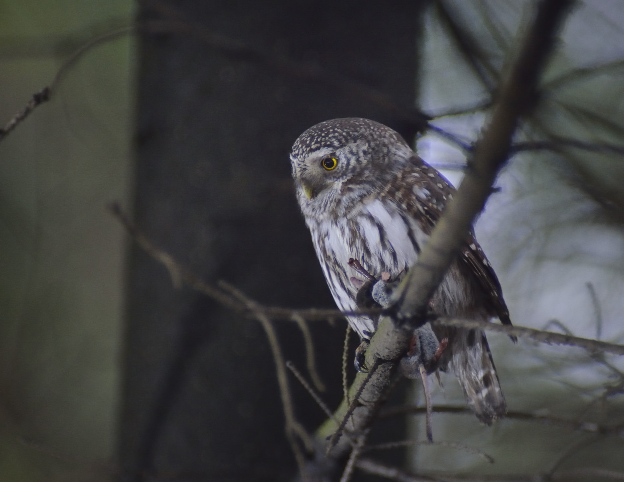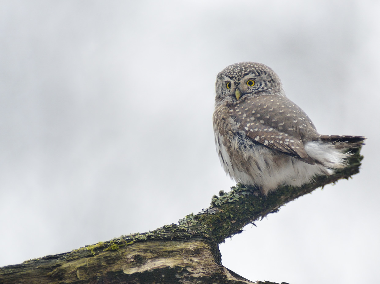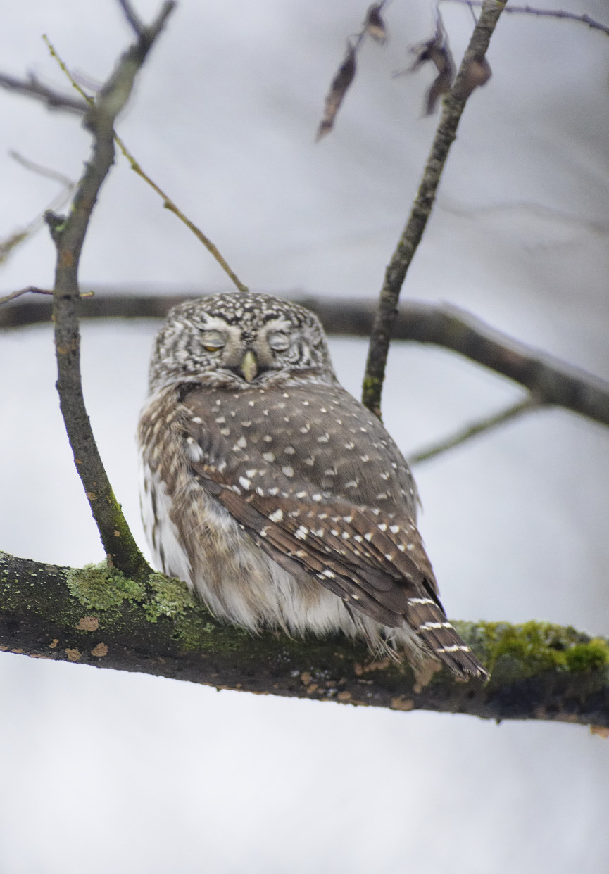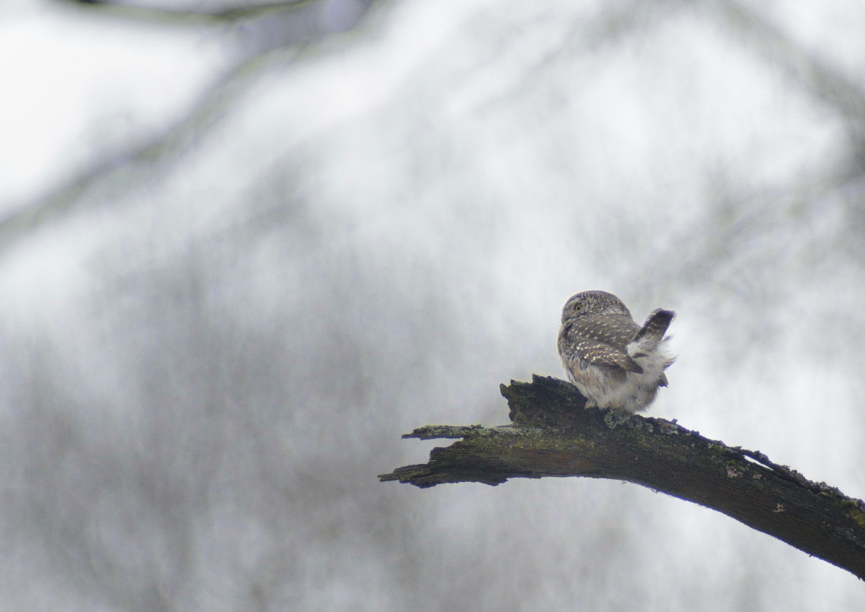 Да сегодня как и сказал Юра снимали сычика воробьиного. Погода конечно оченна пасмурная, начал с ISO 1600 и к 16 часам закончил на 6400.