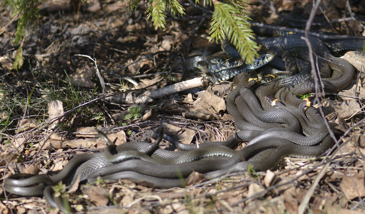 Ого. Таких скоплений еще не встречал, хотя ужей в этом году видел полным-полно.