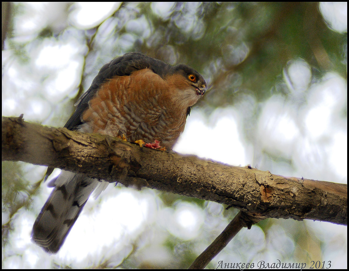 Прошедшее воскресенье, с Юрой снимали перепелятника поедающего воробья. Юра еще смог его снять в момент после поимки воробья, на снегу.