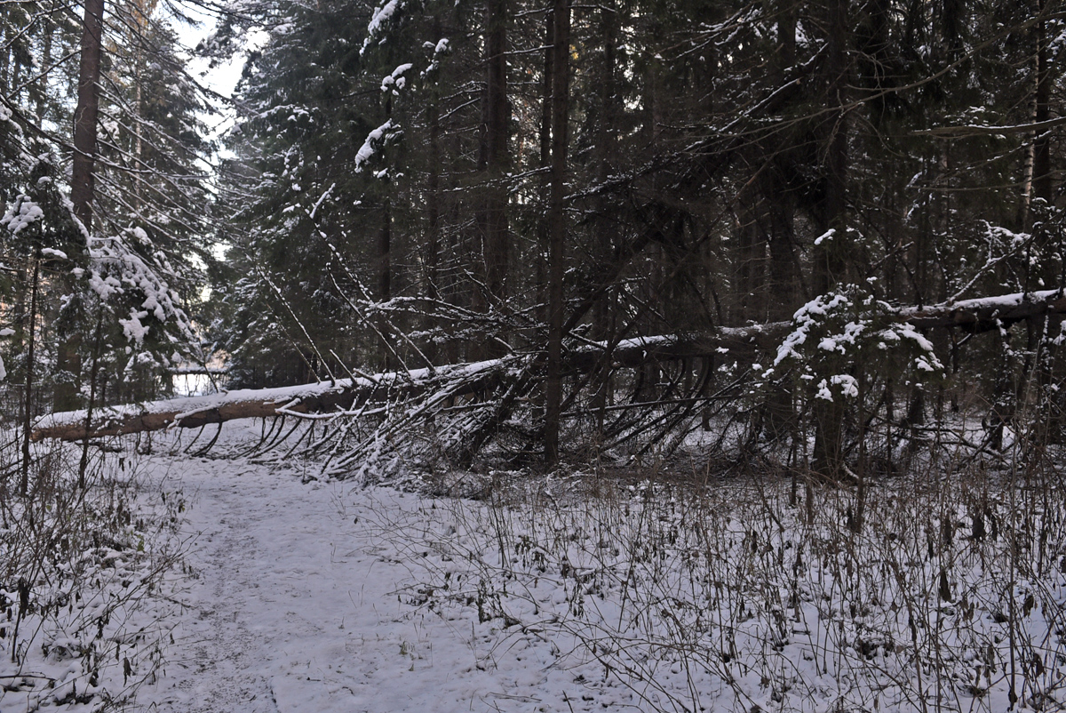 Огромные площади Лосиного острова поражены жуком-типографом и в последние годы многие деревья стояли сбросив кору и  погибая. В этом сезоне, гуляя по лесу, заметил, что погибшие деревья начали массово рушиться. Дорога от посёлка к Нехлюдову ручью завалена упавшими деревьями. Очень жаль .