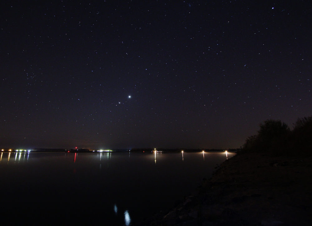 Венера, Юпитер, Марс, отражения Венеры и Юпитера, и, разумеется, Земля. Виден слабый зодиакальный свет. Снято 21 октября 2015 года на окраине Нижнего Новгорода.