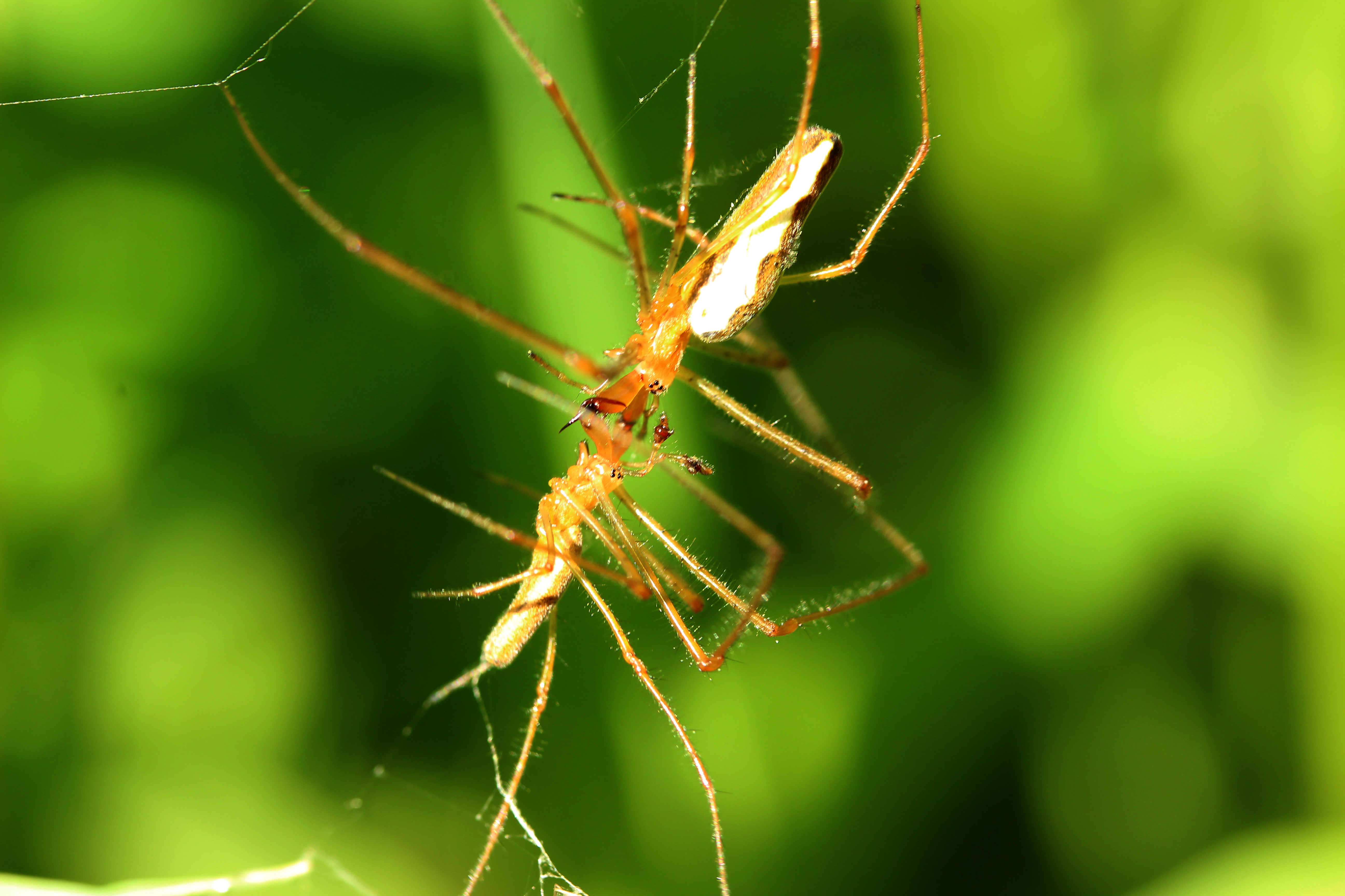 Свадьбой, конечно.) У тетрагнатид каннибализм не так распространен, самцы многих видов захватывают хелицеры самок "в замок" при помощи своих хелицер, что повышает безопасность отношений. Тут, кстати, сцепление хелицерами хорошо видно.