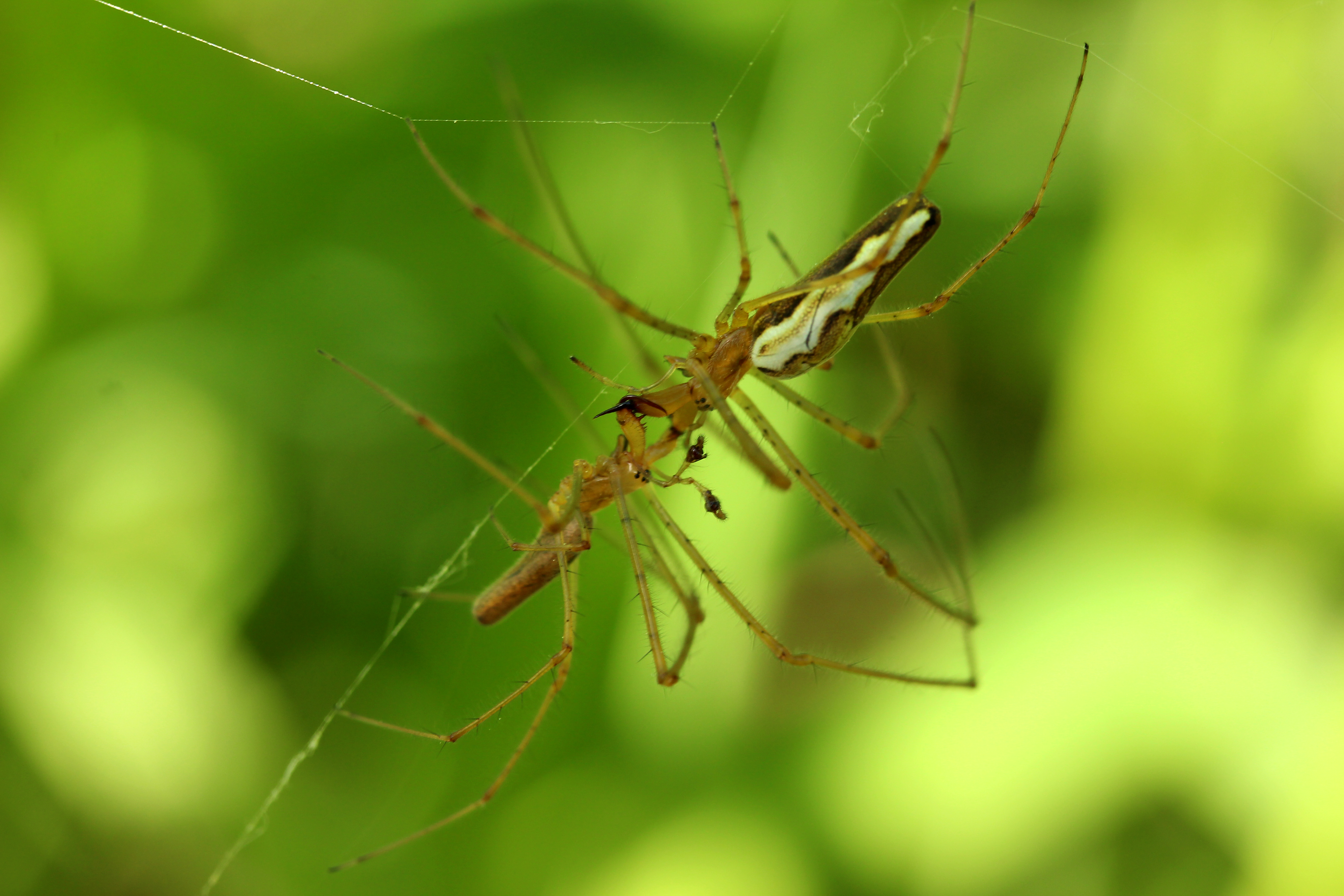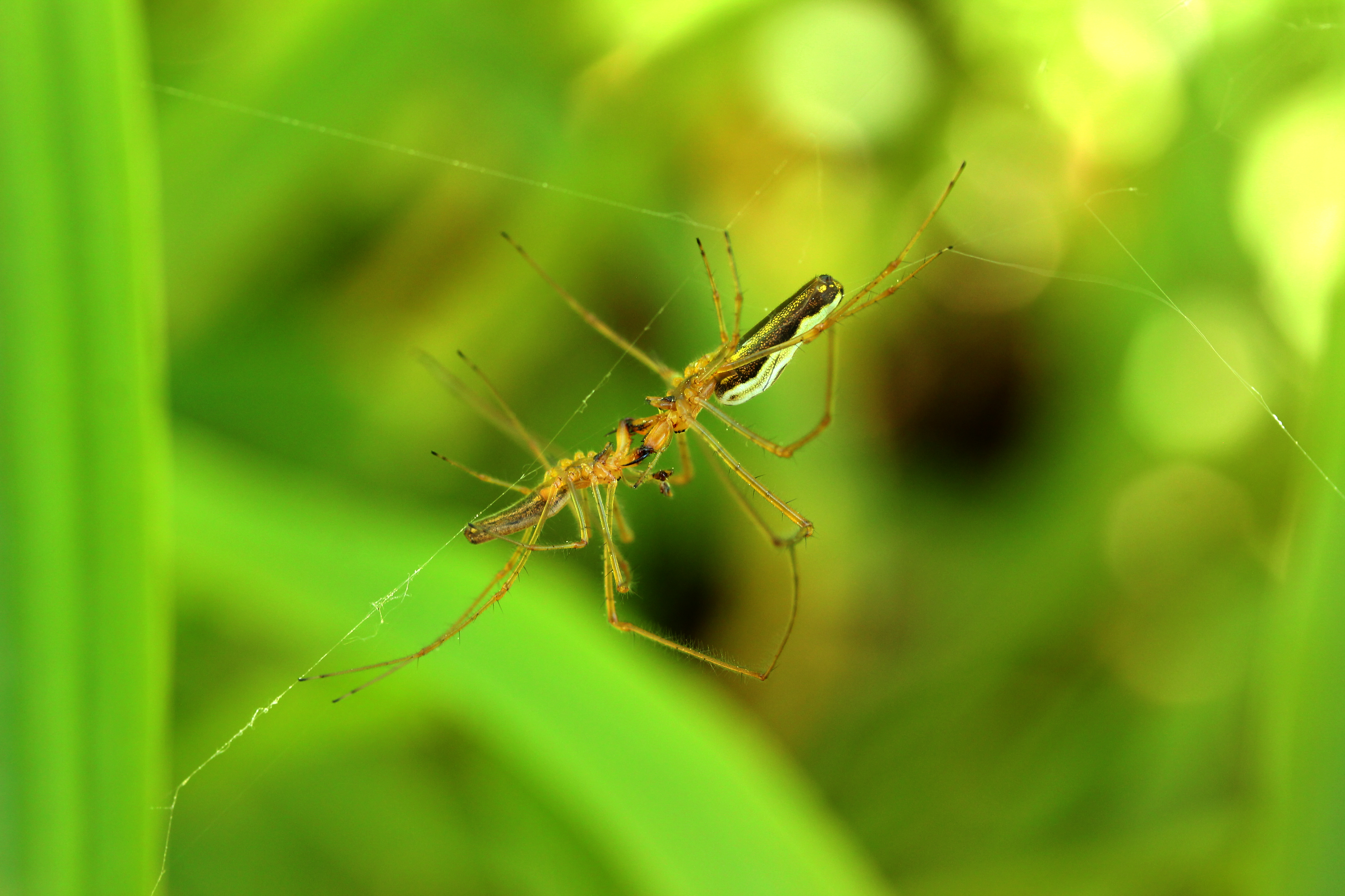 22.05.2019, Ярославская область, Национальный парк Плещеево озеро. Не часто удается увидеть спаривание пауков. А если и увидишь, это не всегда место гне их можно удобно сфотографировать, что бы не напугать. Иногда этот процесс проходит быстро, а иногда затягивается на несколько минут. Важно суметь сфокуссироваться. И лучьше это делать в ручную. Так как небольшой ветер и на автомате вы ни когда не попадете в фокус.