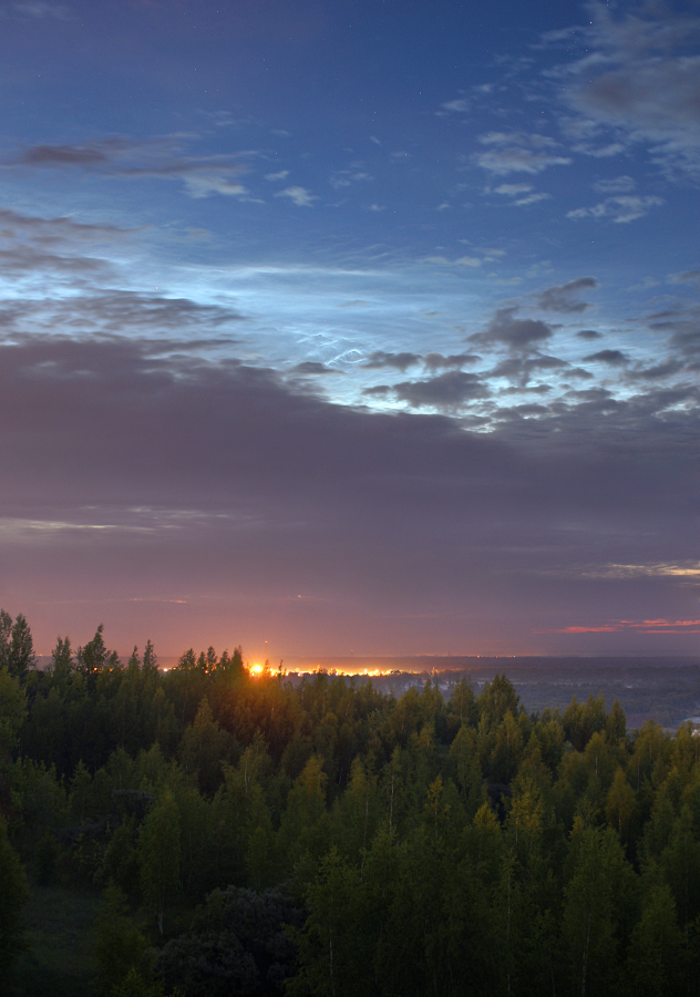 Серебристые облака и тропосферная облачность в ночь с 1-го на 2-е июля 2020, Нижегородская область.