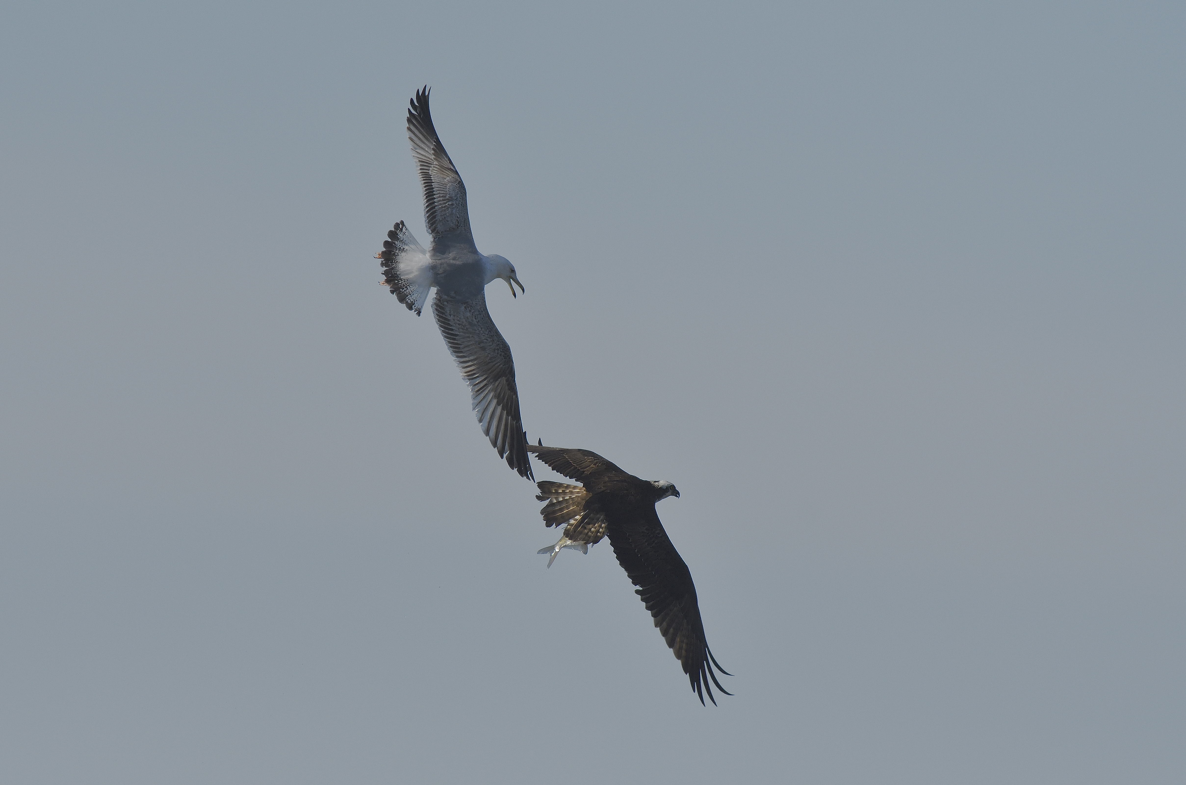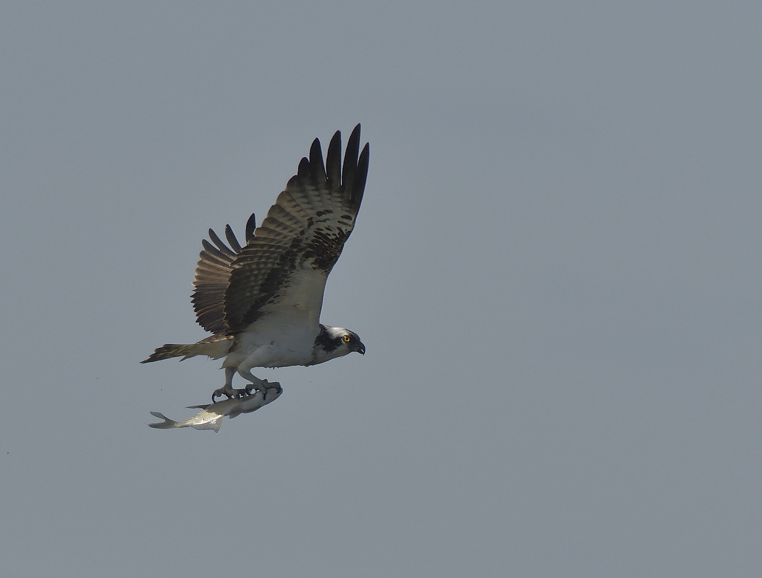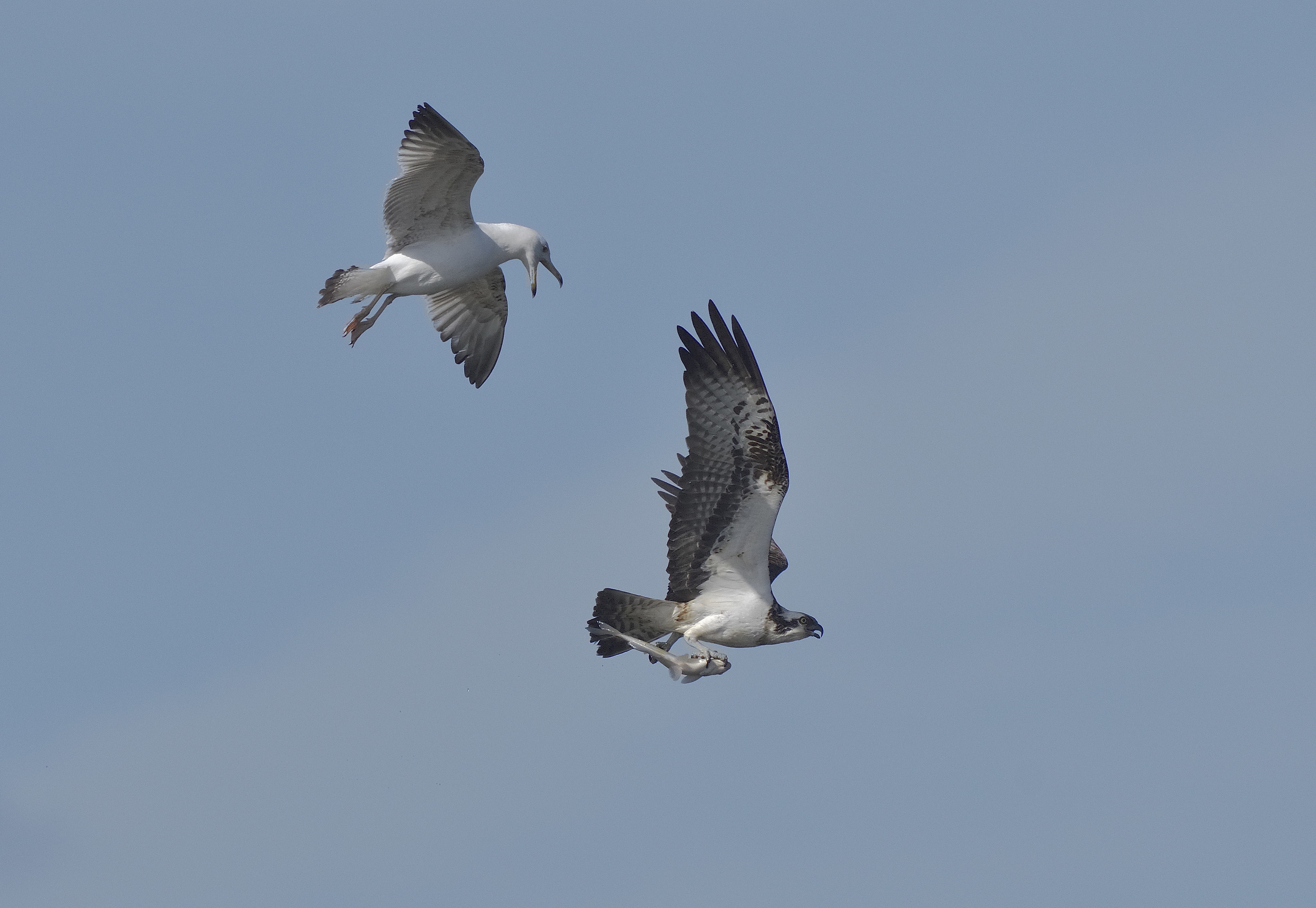Скопа, удачная охота. Лещ попался хороший и она взяла курс к гнезду. Но бандитизм никто у нас не отменял...