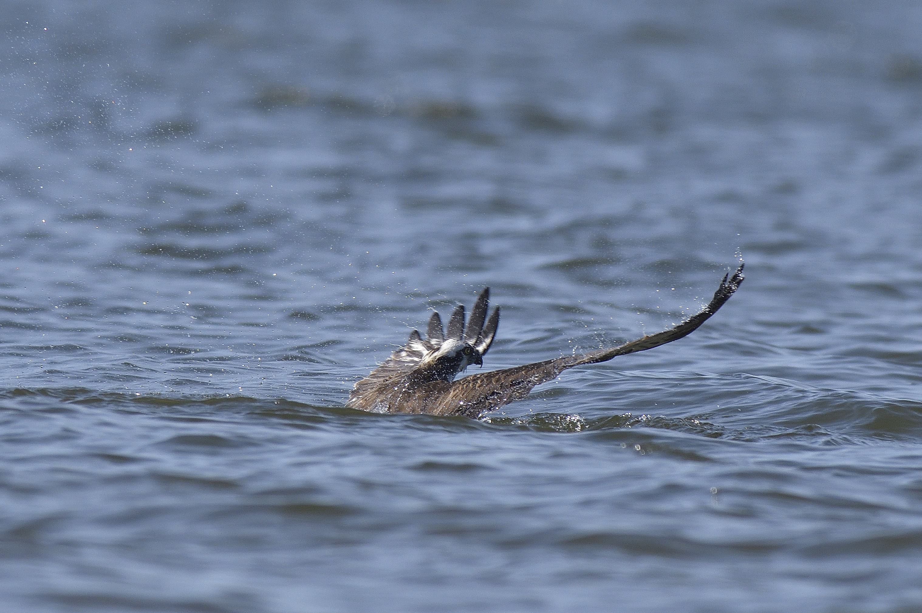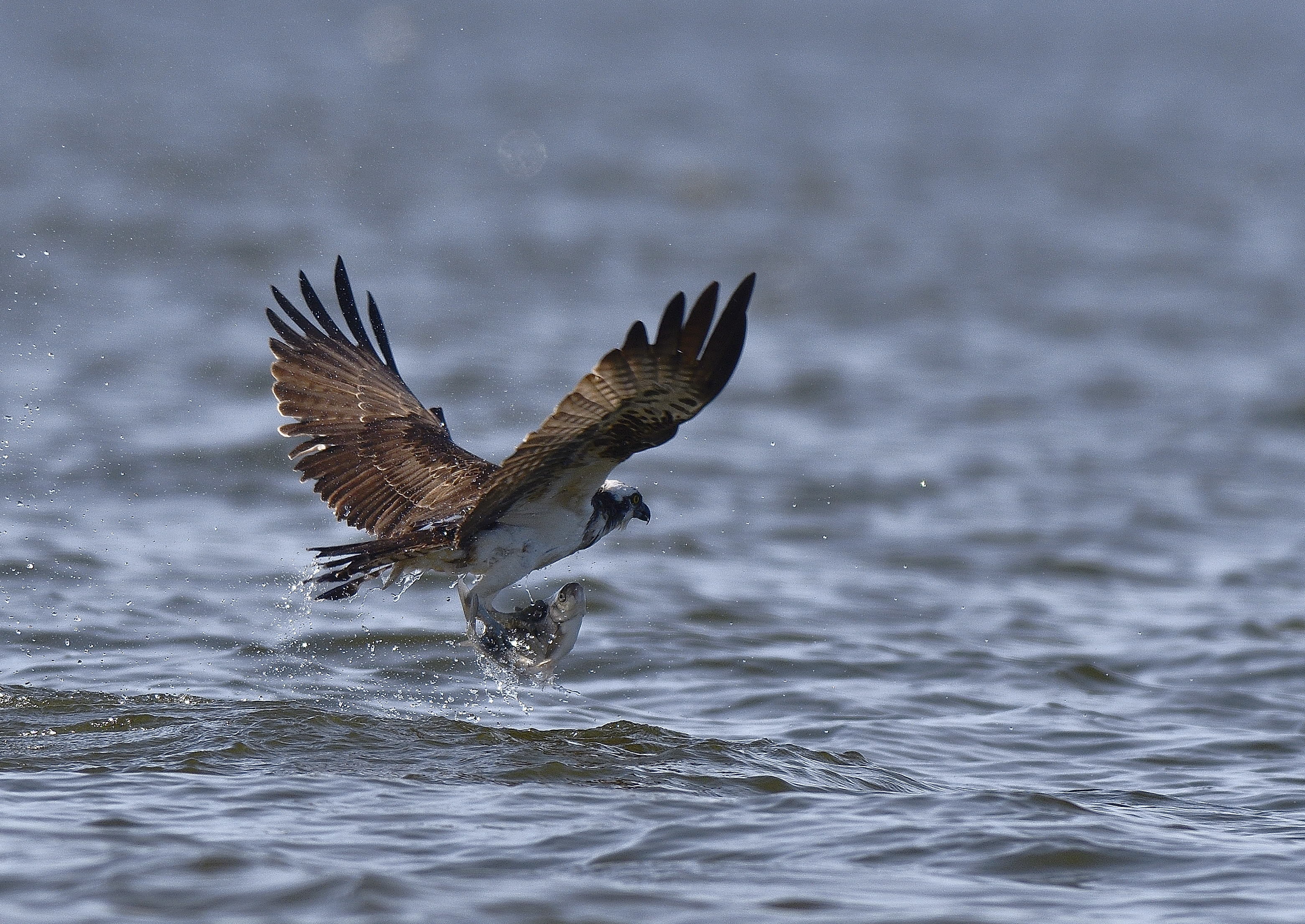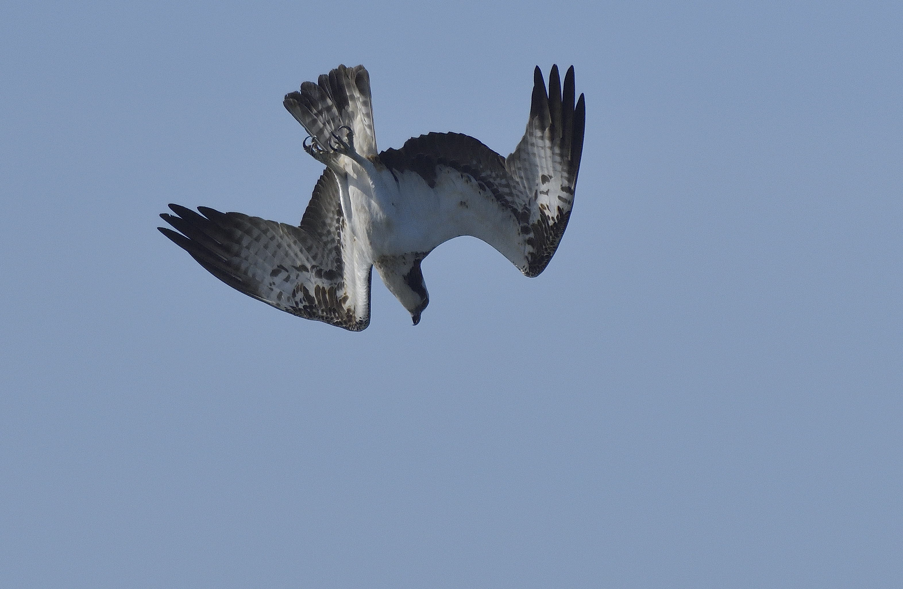 Скопа, удачная охота. Лещ попался хороший и она взяла курс к гнезду. Но бандитизм никто у нас не отменял...