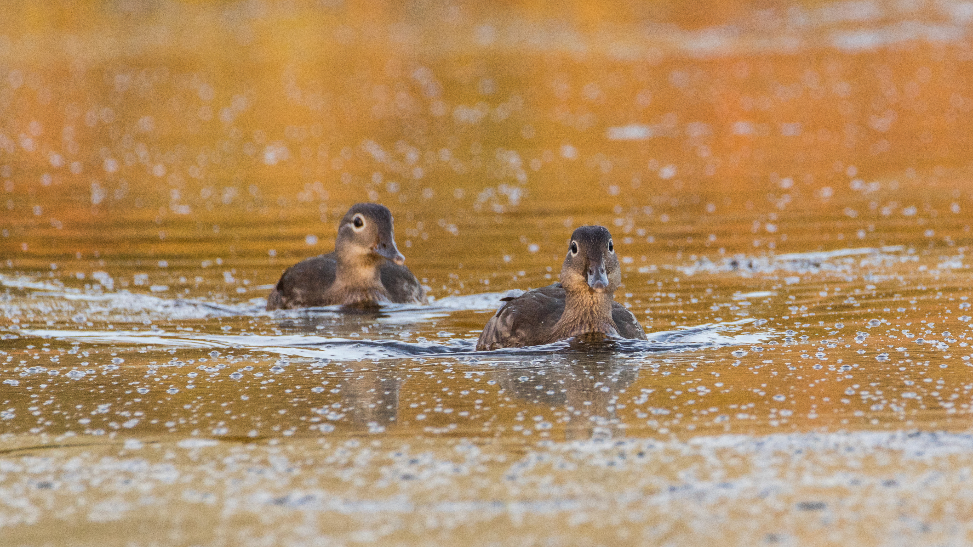 Молодые мандаринки вышли кормиться.
