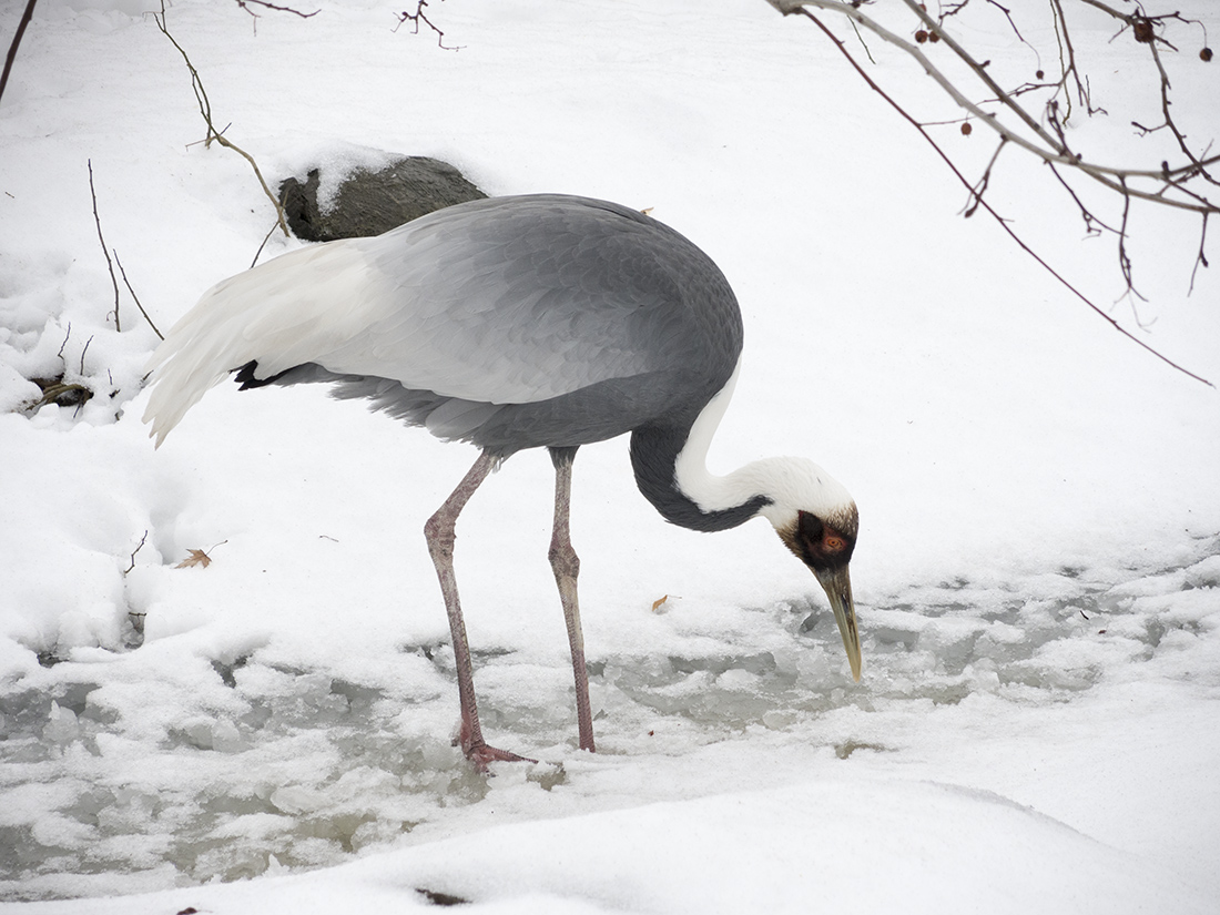 Снимал на карманную камеру, у неё маленький объектив, и при достаточном большом зуме кадр пролезает через ячейку металлической сетки. И хорошо что журавль нагнул голову. С поднятой головой на заднем плане была бы видна металлическая сетка ограждения и всякое другое зоопарковское.