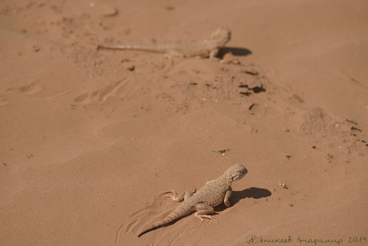 На съёмку драк между круглоголовками мы конечно опоздали, пик активности у них в мае- июне, а у нас то филины на уме, то сайгаки то волки вдруг... Круглоголовок мы конечно нашли и я даже добился от них показательной схватки, но по известному закону, в этот момент в Никоне закончилась память, а у Соньки сел аккумулятор, что позволило мне спокойно (с тихим матом в горле) понаблюдать короткую, но яростную схватку ящериц. Аккумулятор, и карту я конечно поменял, но фишка больше не легла- ящерицы упорно не хотели друг друга замечать...морды в стороны и загорают- ну ни судьба!