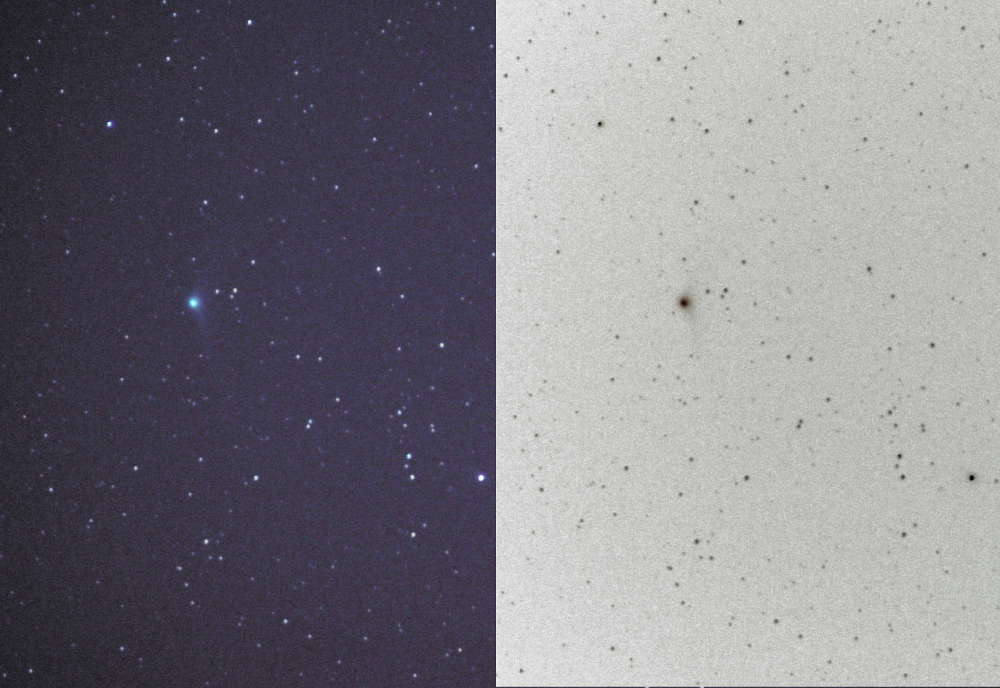 Напротив, пока условия ее видимости только улучшаются. В эту ночь она будет находиться в 6 градусах от звезды Арктур (правее и ниже), и несколько следующих дней будет сближаться с этой звездой (2 января она будет над Арктуром в градусе от него). 29-го она взойдет примерно в 0.30, но начинать съемку лучше с 3.00, когда высота кометы над горизонтом превысит 20 градусов. Из минусов - на небе всё время будет присутствовать Луна в фазе 85%, что отрицательно скажется на съемке и наблюдениях, но попробовать можно, тем более, ясное небо - та еще редкость в наших краях.)) Без трекера, наверное, стоит поступить так: взять самый светосильный объектив 85 или 100 мм (совсем на худой конец сойдет и полтинник, особенно на кропе). Выйти около трех ночи, найти на небе Арктур (он будет на востоке на высоте примерно 25 градусов, еще его можно найти, мысленно продлив ручку ковша Большой Медведицы примерно на длину всего ковша, взгляд сразу "поймает" яркую звезду, она там в окрестностях одна такая). При отсутствии трекера установить камеру на штатив боком, скомпоновав кадр таким образом, чтобы Арктур был в ЛВУ поля зрения, после чего незамедлительно снять серию в 20-30 (ну 40) кадров с открытой диафрагмой, ISO 800 или 1600 и заранее подобранной выжержкой (в зависимости от модели камеры и фокусного расстояния объектива этот параметр будет разным, на кропе с объективом 50мм это будет порядка 4-5с, с фокусным 100мм - около 2-2,5с, но подобрать все равно придется индивидуально, а приведенные мной значения можно взять в качестве отправной точки). Да, серию снимаем в раве. Снимать больше кадров смысла нет, из-за движения звезд и дисторсии объектива их все равно нельзя будет сложить корректно. Ну а дальше уже дома нужно озадачить DSS или программу-аналог сложением этих кадров, выбрав алгоритм каппа-сигма клиппинг, а результат сохранить с применением и внедрением корректировок, после чего мучить его в ФШ или ГИМПе. В общем, как-то так. =)