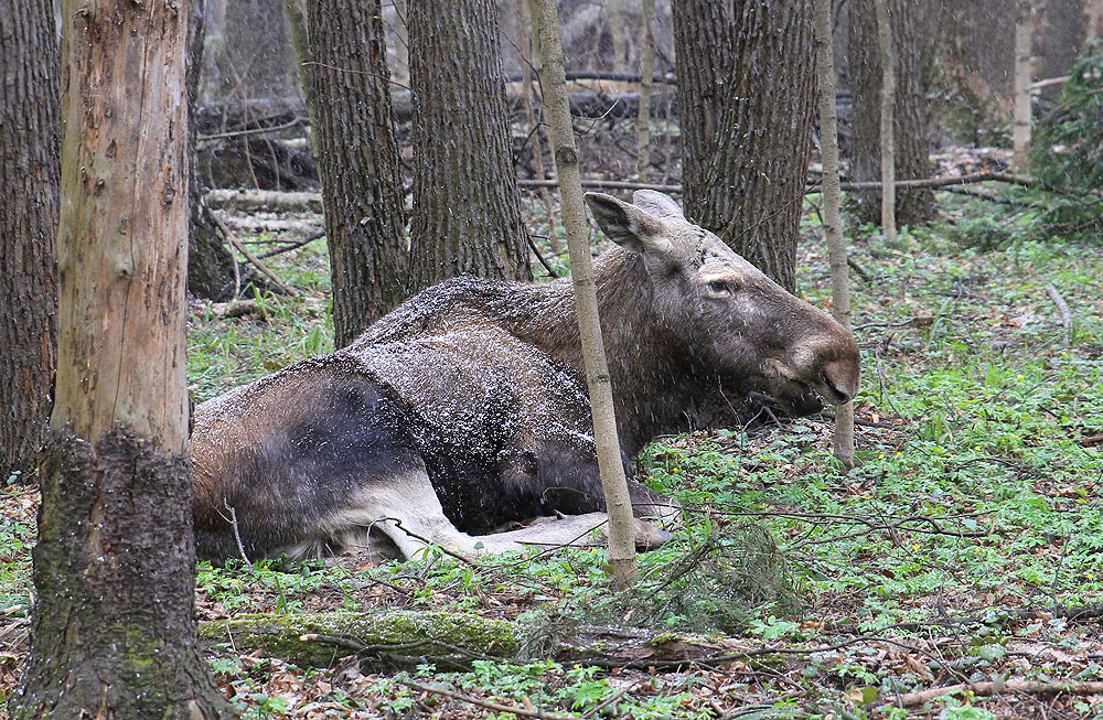 Лосиха и лосёнок,Лосиный остров,апрель 2020г