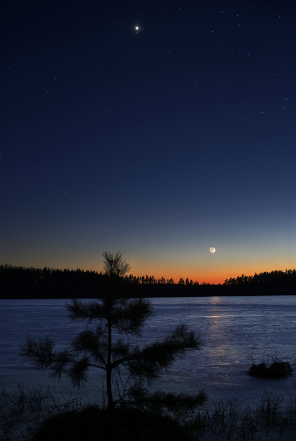 Луна и Венера вечером 26-го марта 2020-го, Нижегородская область.
