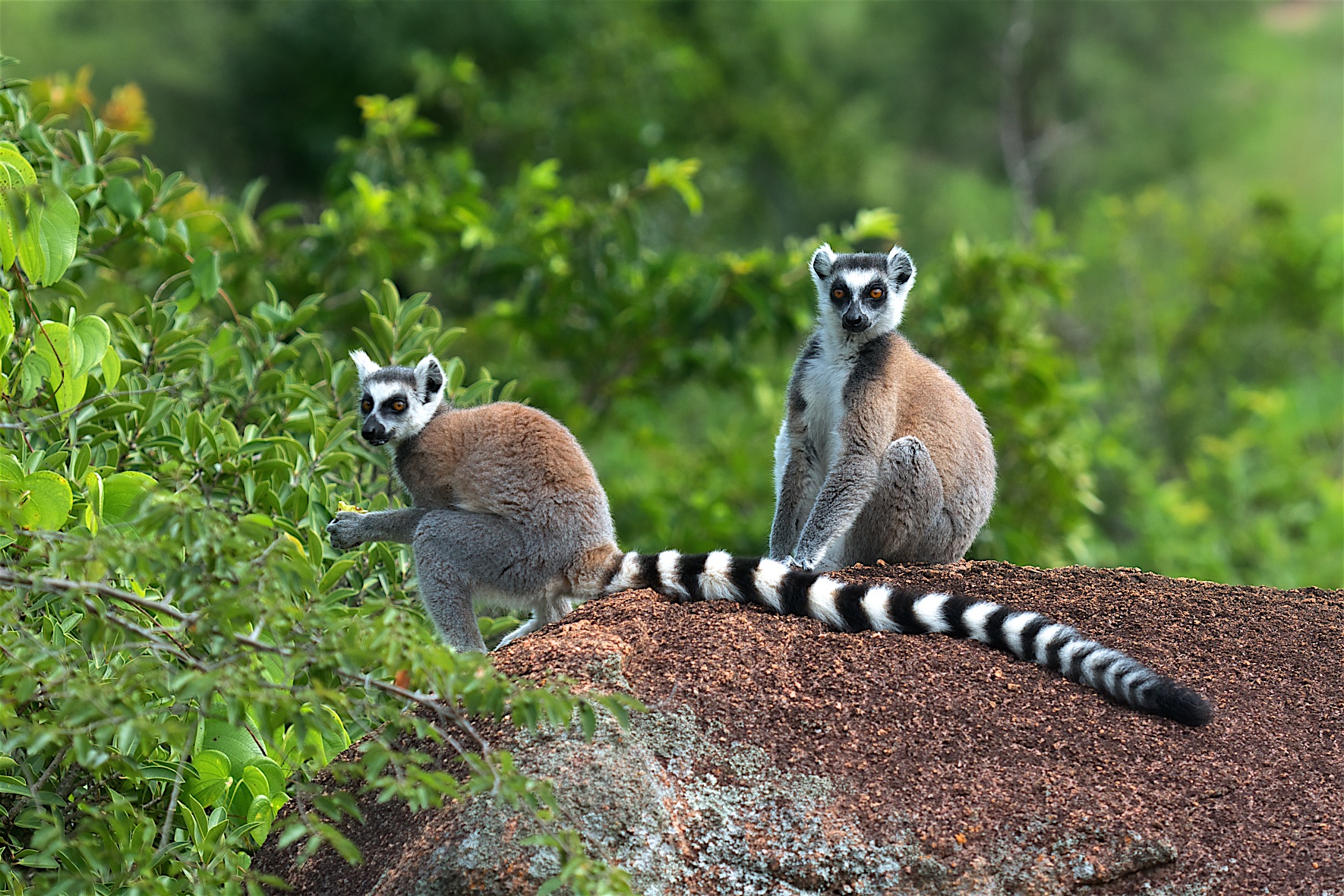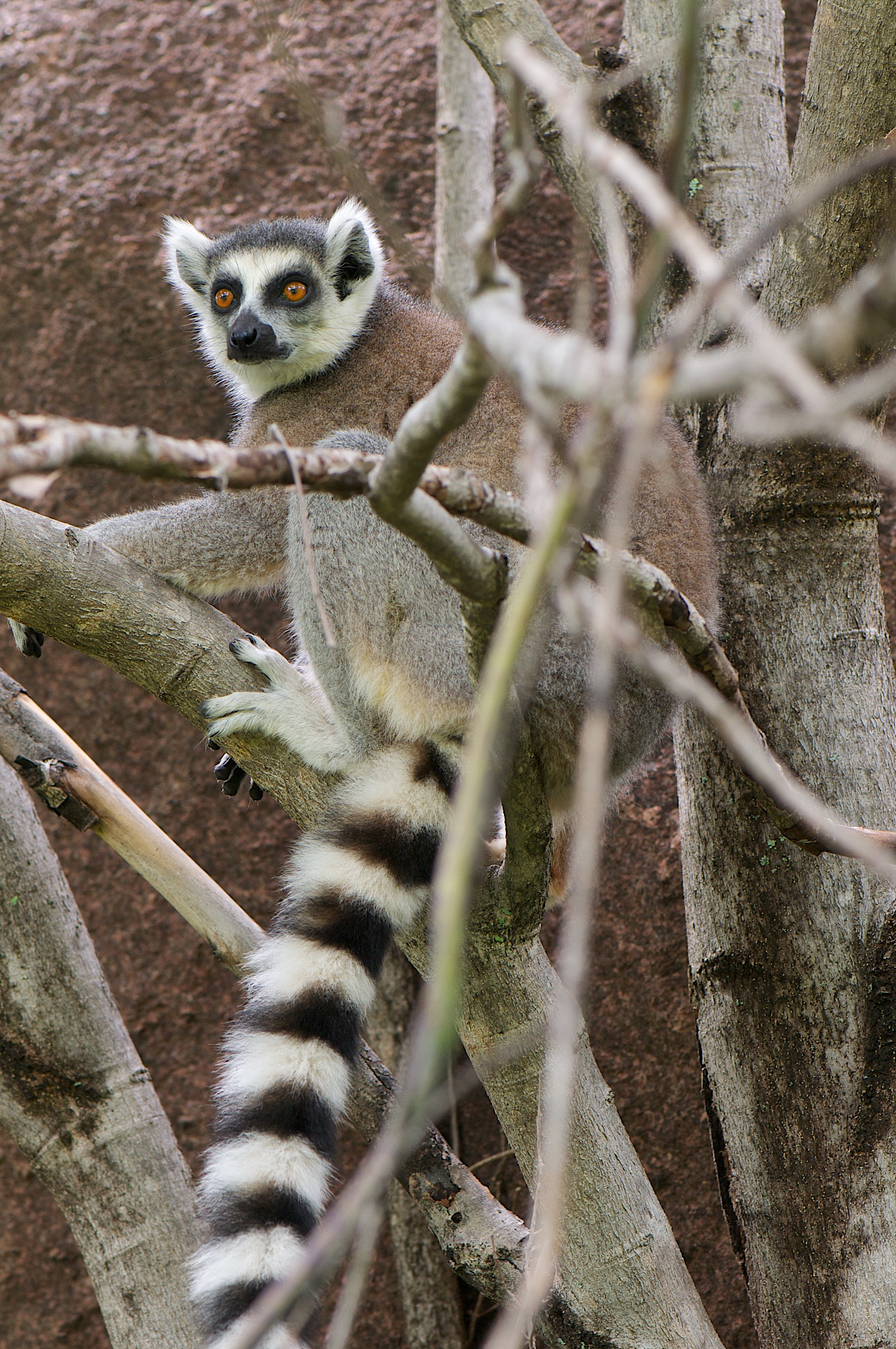 Обитают эти забавные существа только на острове Мадагаскар, точнее в юго-западной его части. По размерам кольцехвостые лемуры больше всего походят на кошек — длина их тела 38-45 см, а максимальный вес около 3,5 кг. Вот только красивый полосатый хвост у них явно не кошачий — его длина достигает 55-62 см, а вес 1,5 кг.
