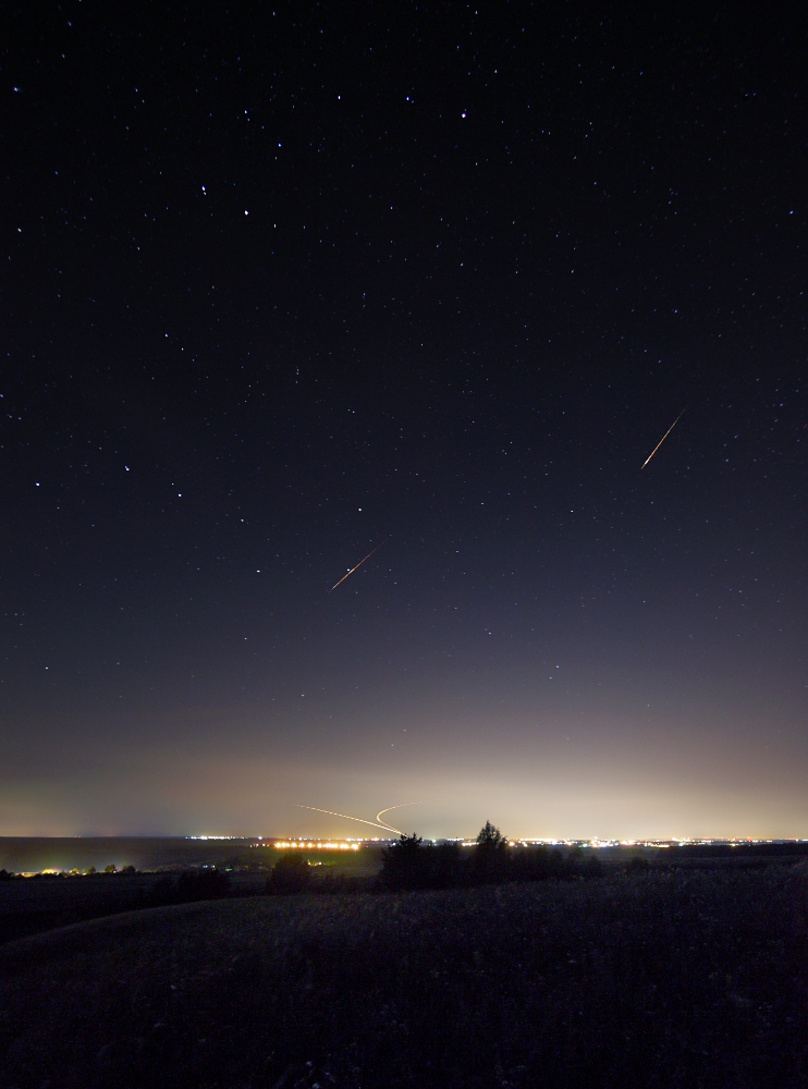 VLANN 1 Sep 2018 Выберите файл с изображением 0 Описание Два метеора из потока Персеиды, два трека взлетающих самолетов и "ковши" Большой и Малой Медведиц. Категория фото Астрофотографии