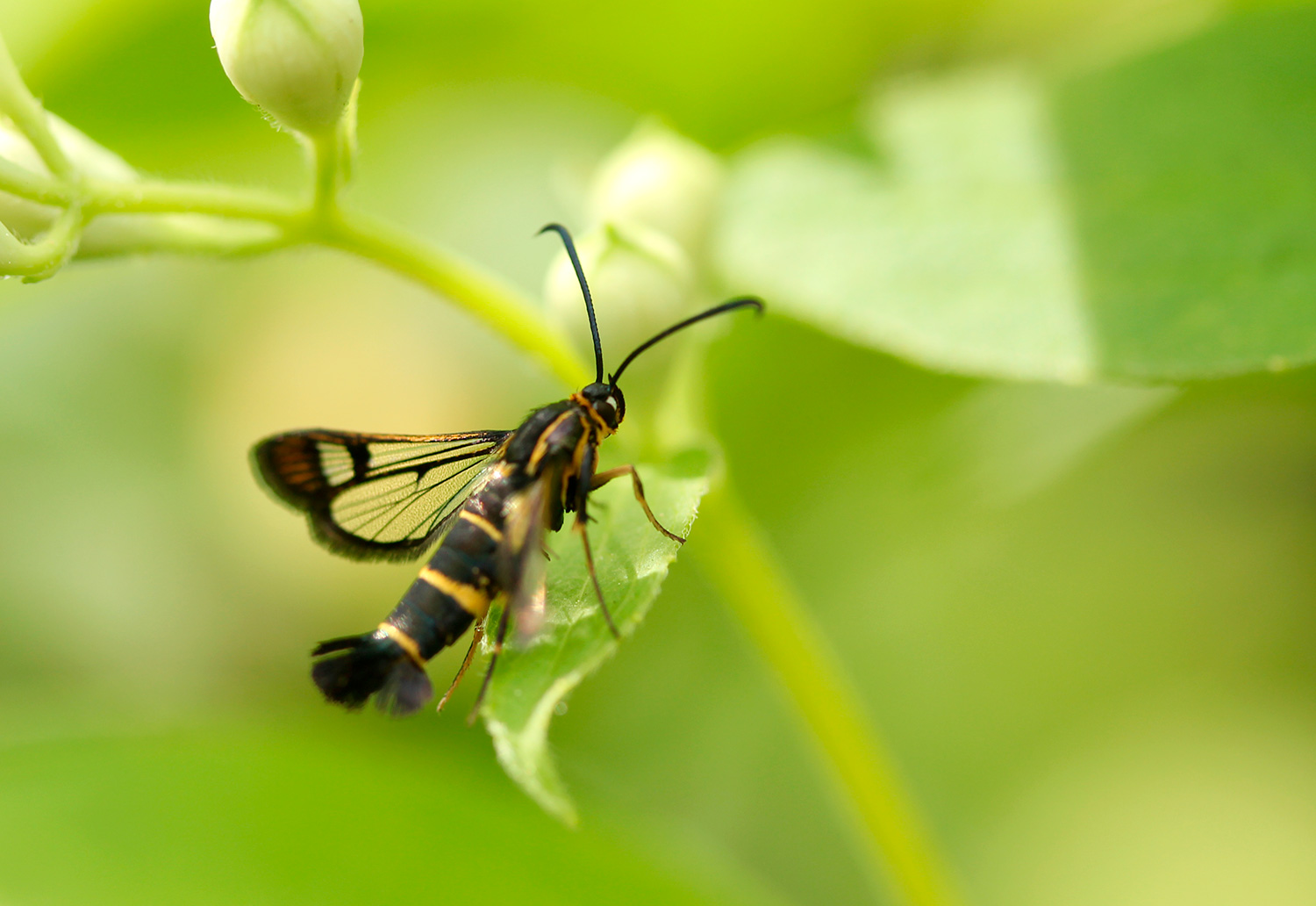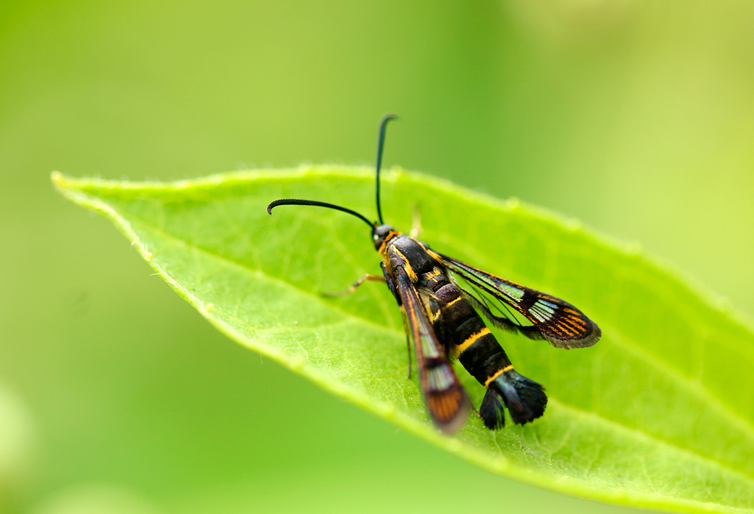 Впервые увидел эту бабочку.  Стеклянница Дубовая, Synanthedon conopiformis,  07.06.2025, Владимирская область, Александровский район.