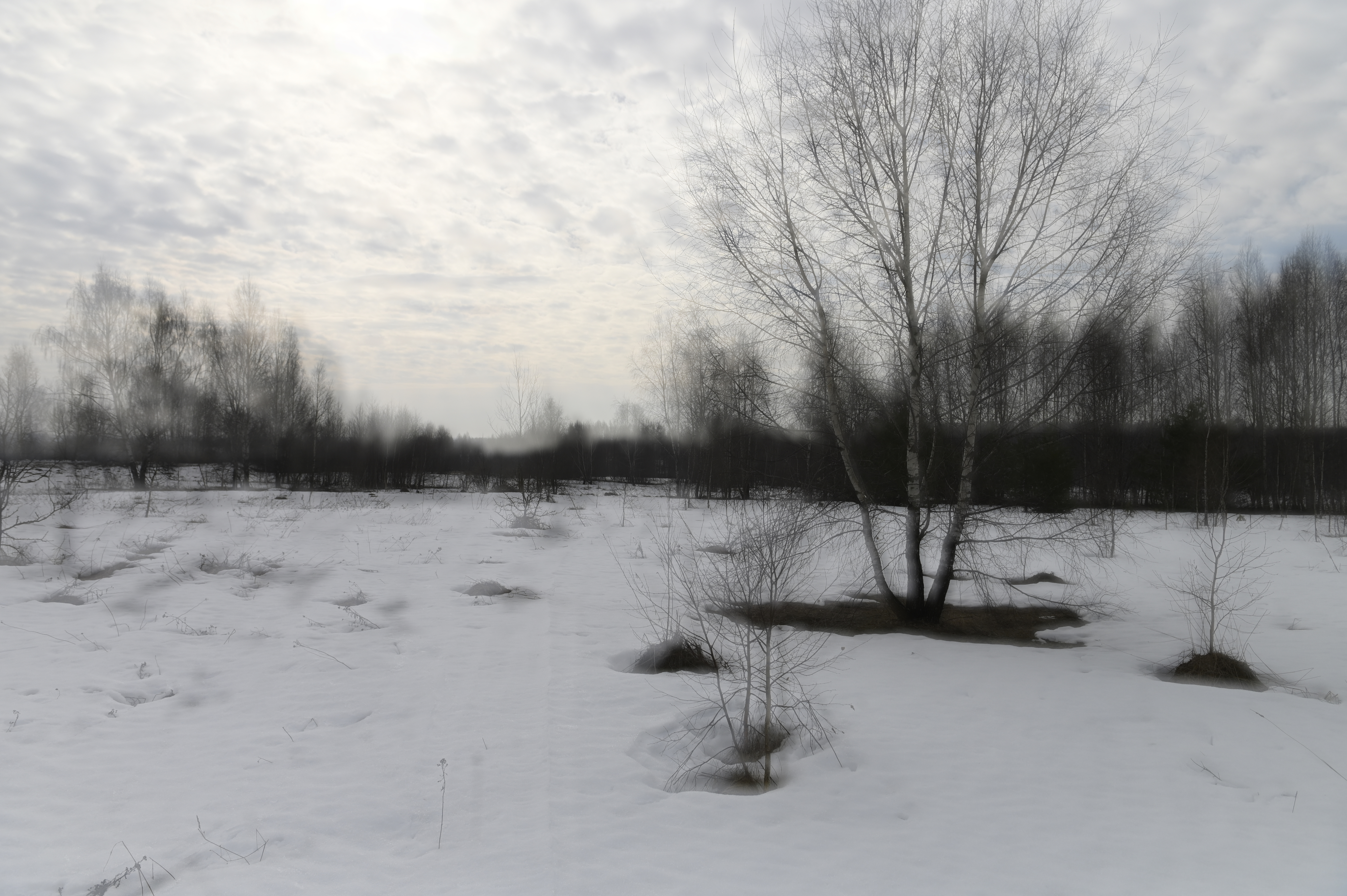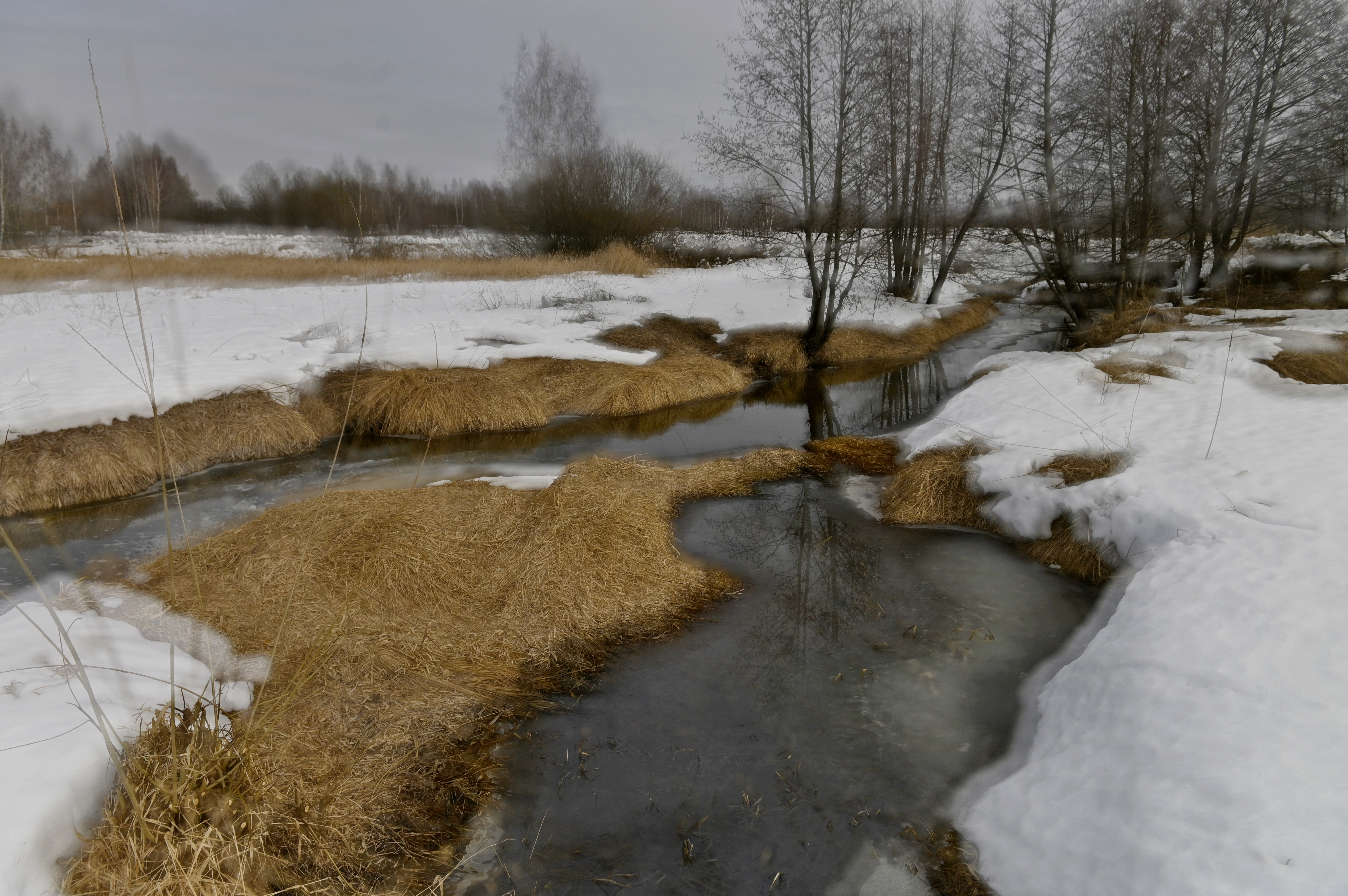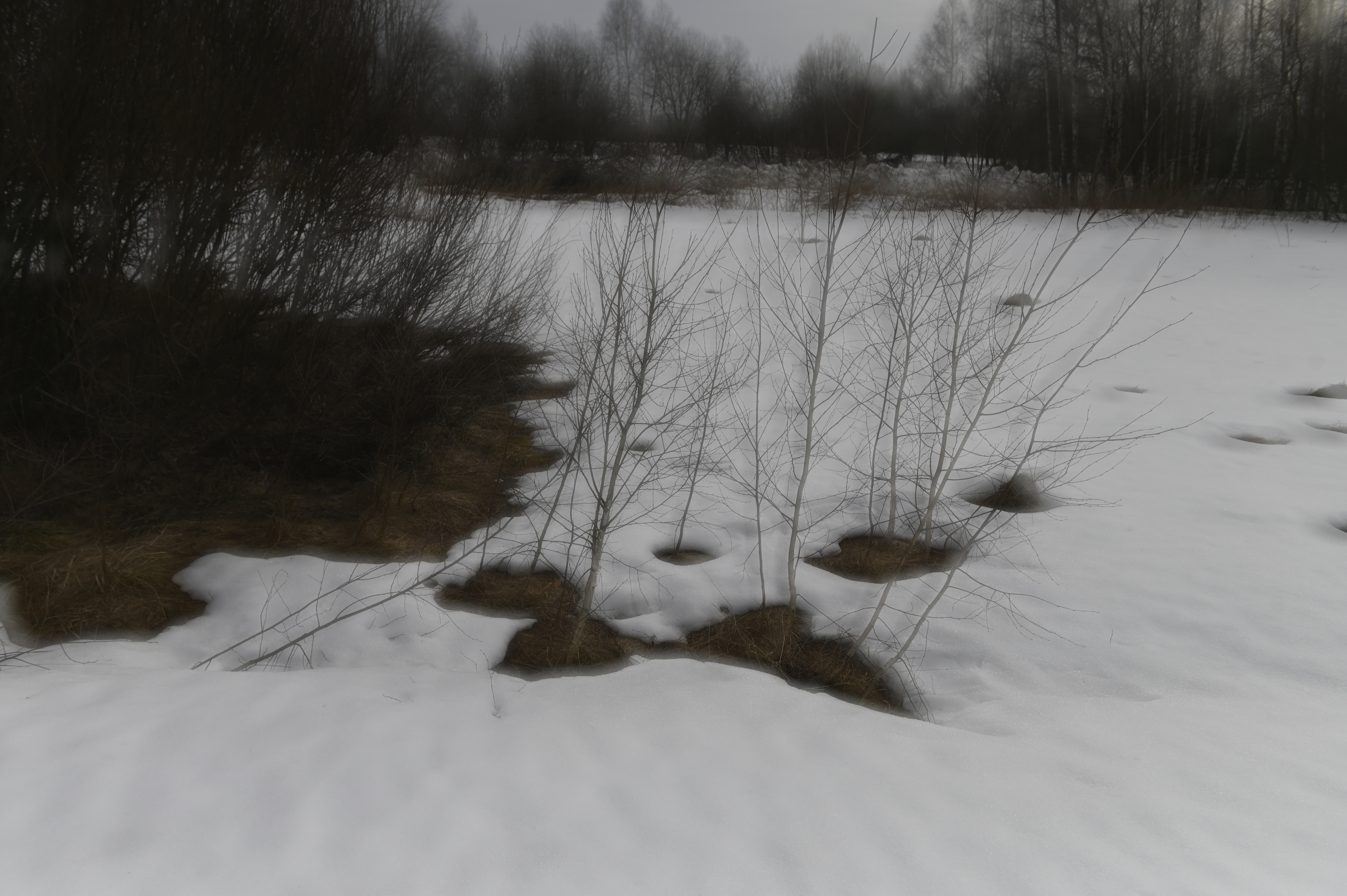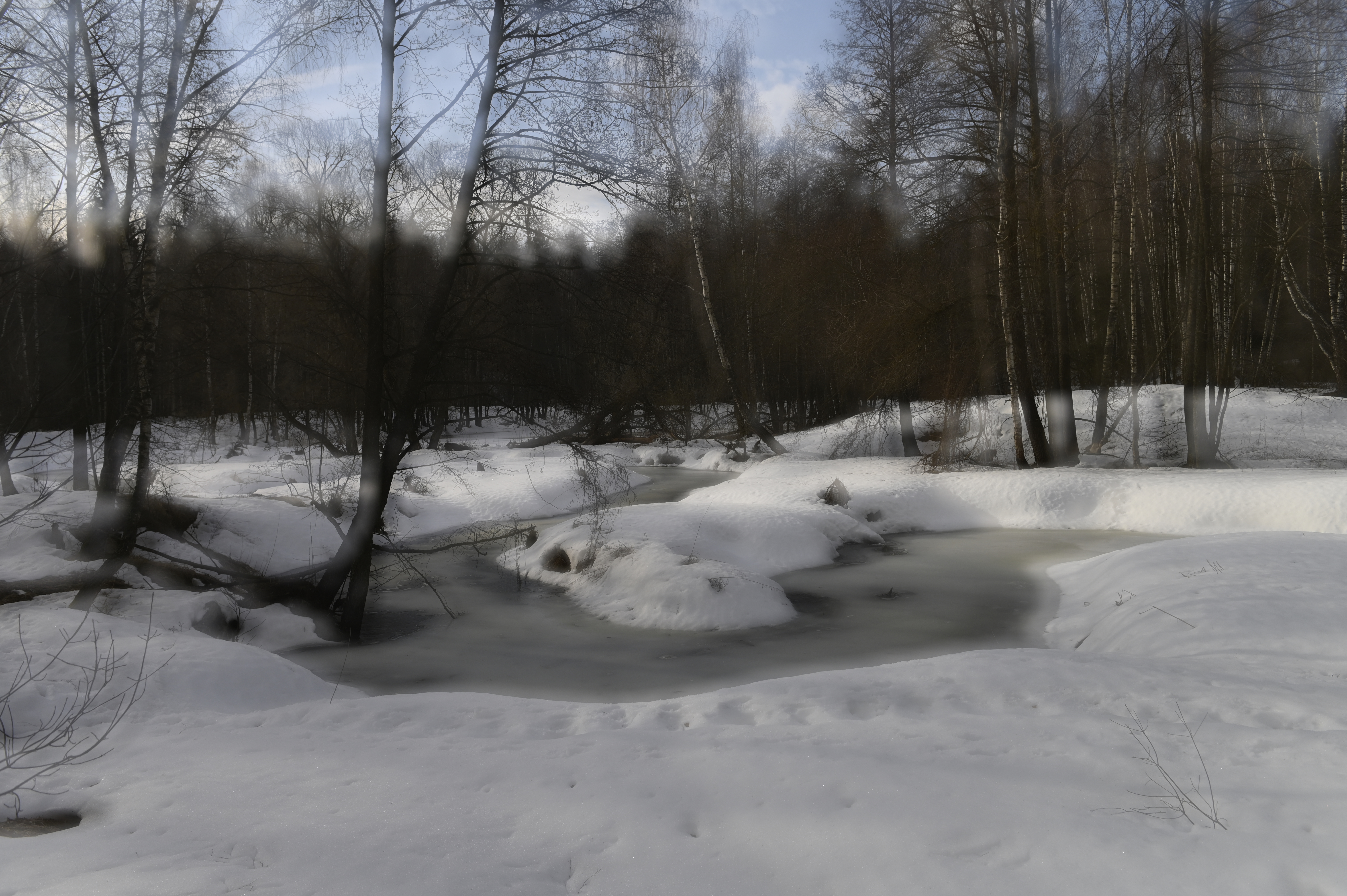 После оттепели и ночного мороза наст держит хорошо и решил отправится на открытые просторы на обход окрестных угодий вниз по течению Раменки в поля. следов тетеревиных токов не нашел. только помет. А так- красивые поля с разливами, бобровая плотина. Нашел несколько лисих нор, вырытых в дренажных отвалах.