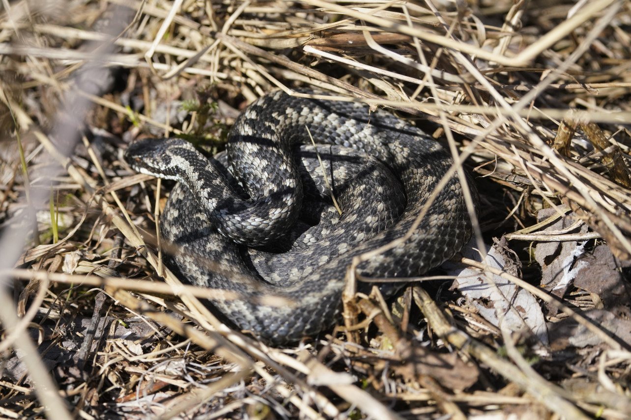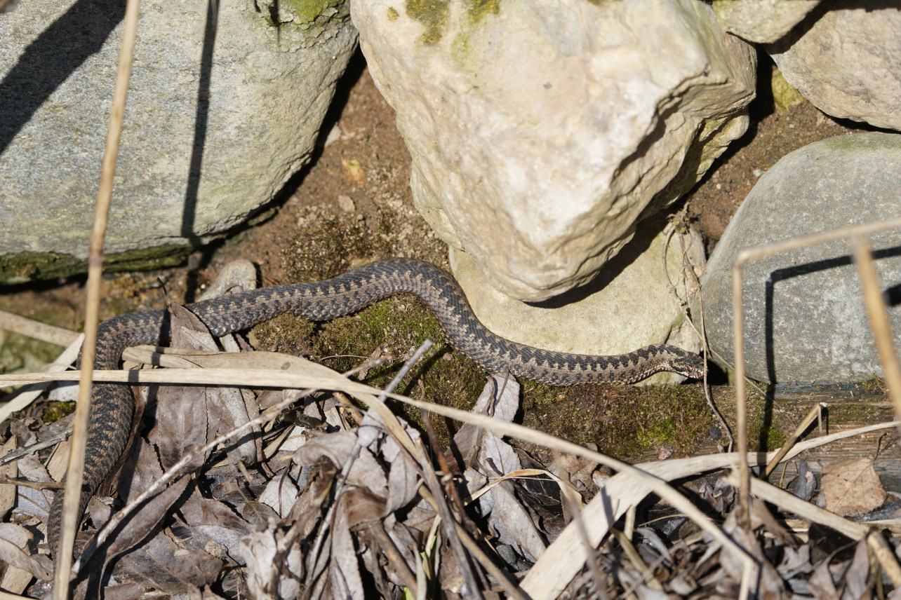 Ещё лежит снег, но гадючки уже выползли погреться...